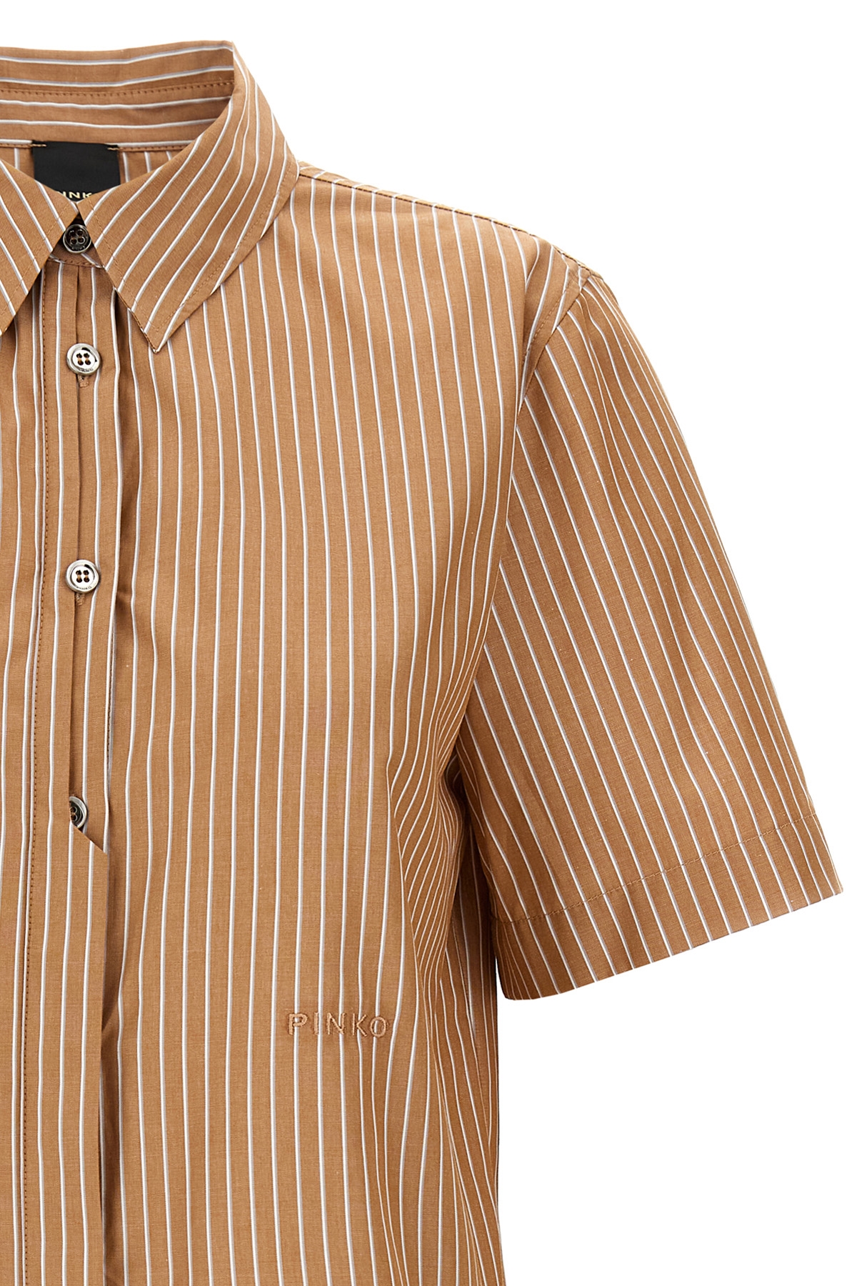 'Innuendo' striped cotton poplin shirt with front logo embroidery, button closure, short sleeves.