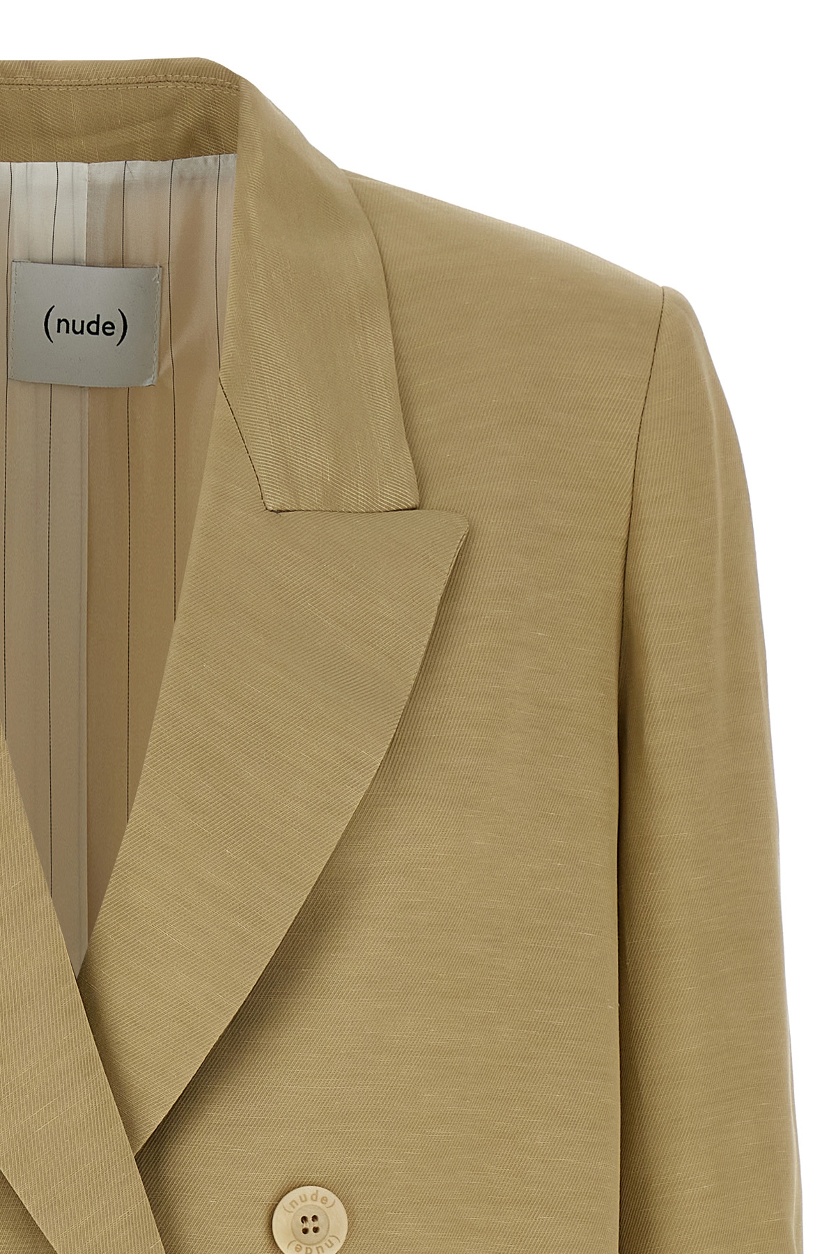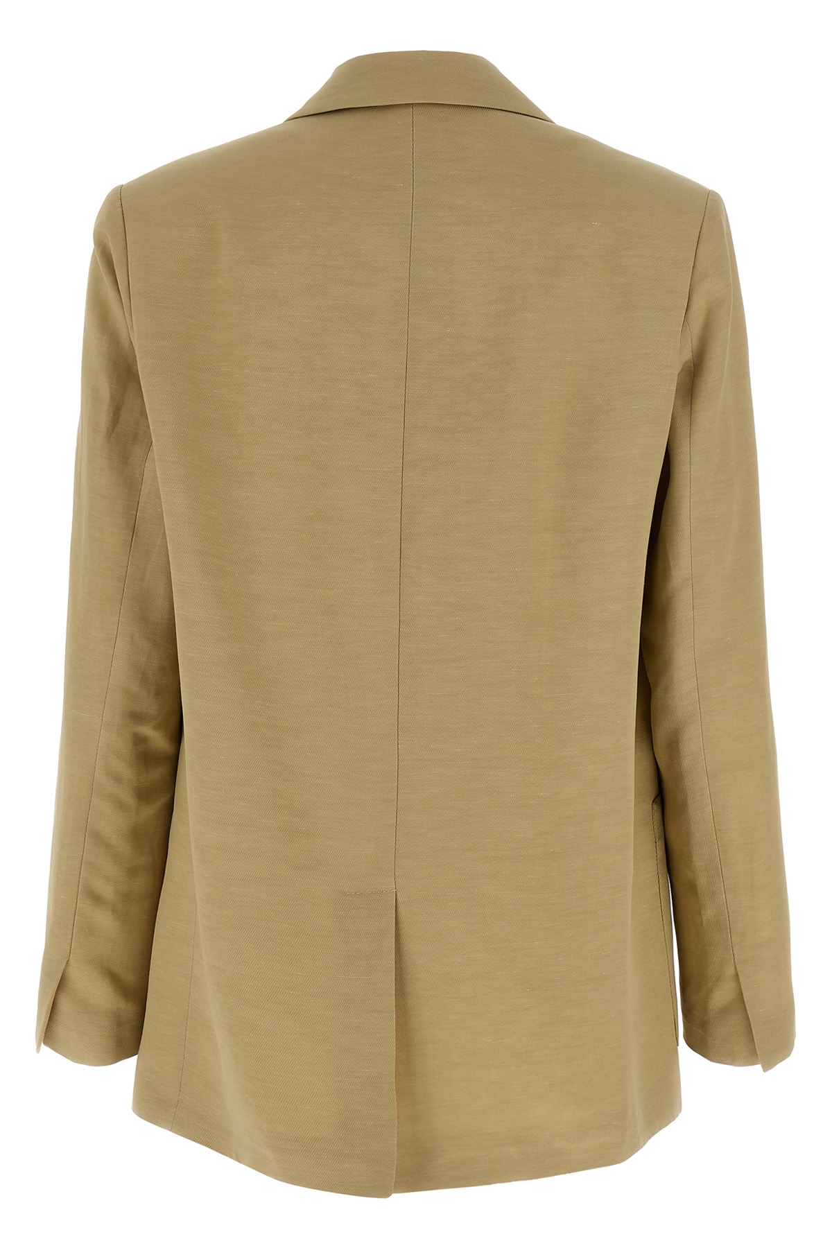 Double-breasted blazer in viscose and linen blend with button closure, lining, mirror lapels, pockets, long sleeves, and back split.