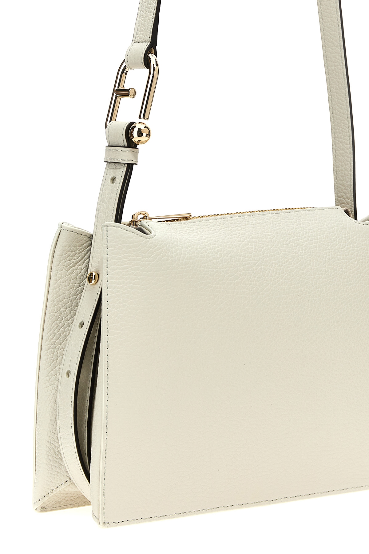 'Nuvola S' hammered leather crossbody bag, zip closure, adjustable and removable shoulder strap, Arcosfera hardware detail, front punched logo.