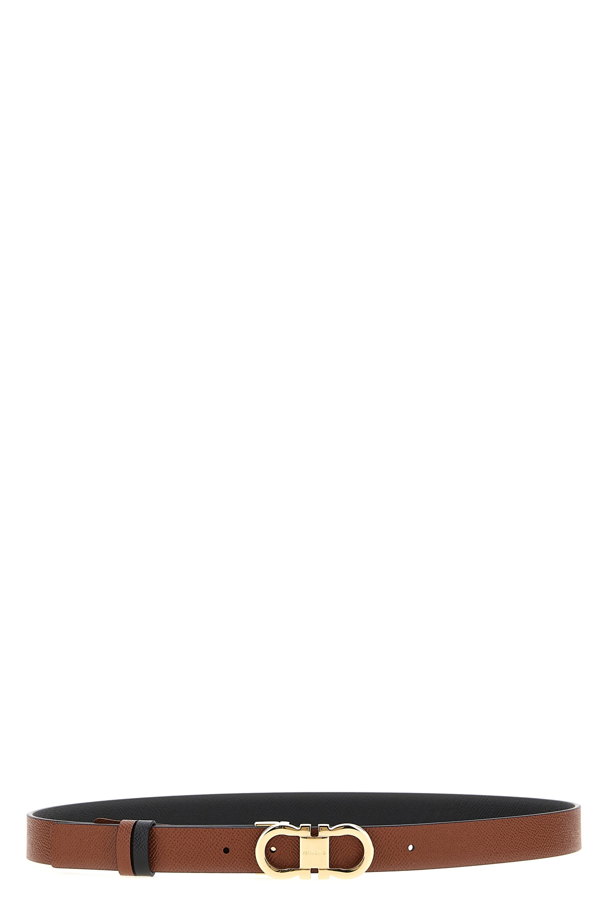 Reversible hammered leather belt with metal 'Gancini' buckle.