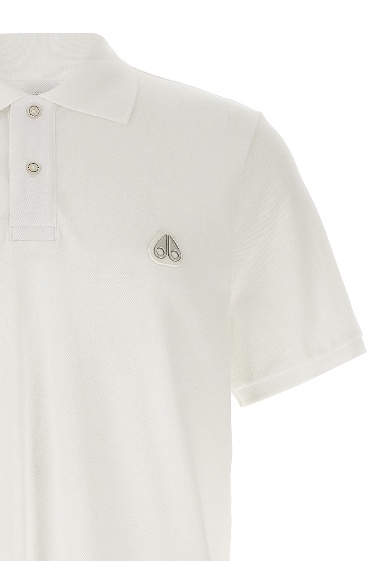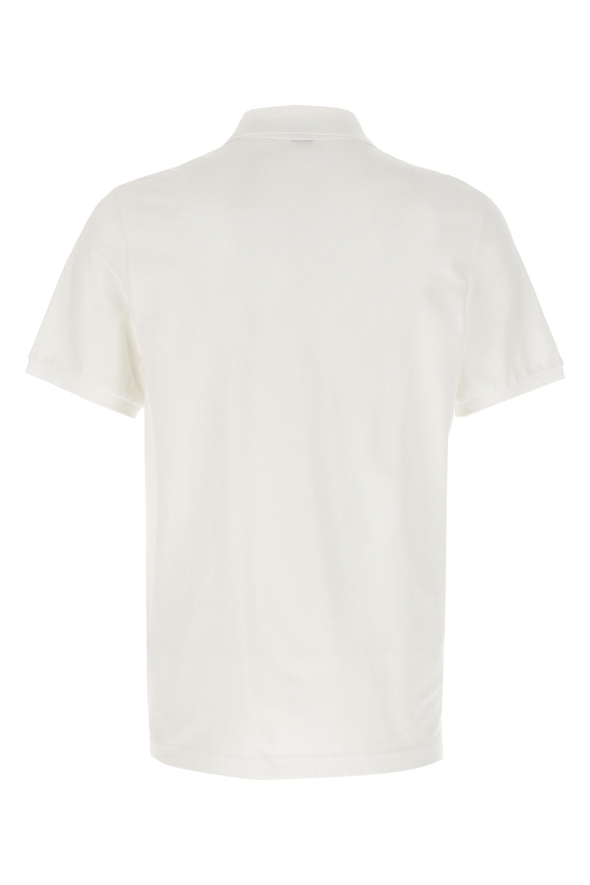 'Everett' cotton pique polo shirt, front leather and metal logo patch, collar and buttons, short sleeves, side splits.