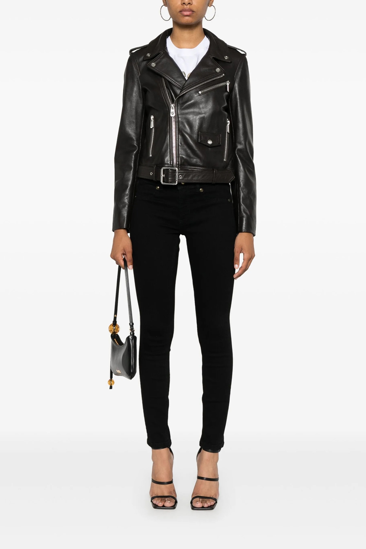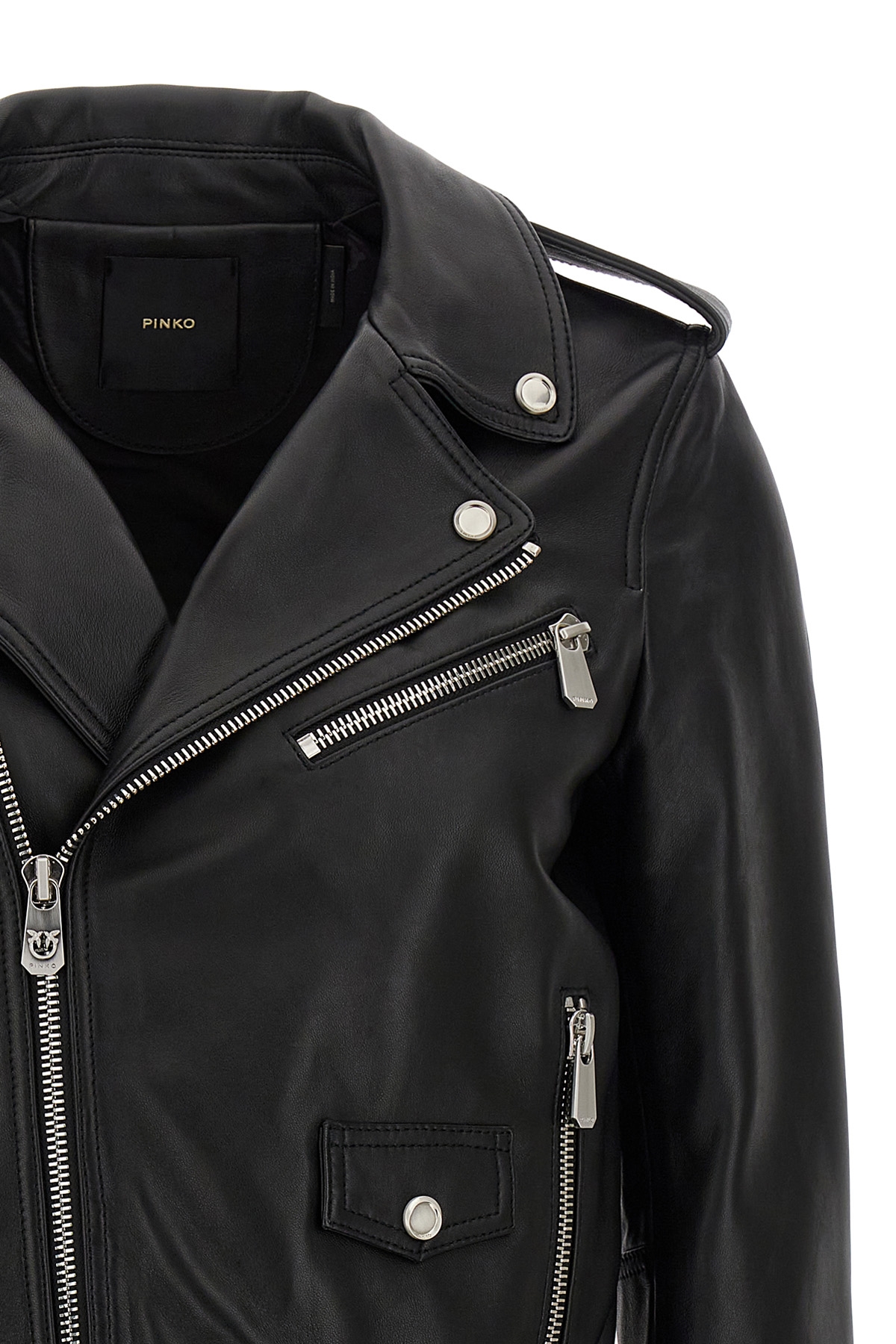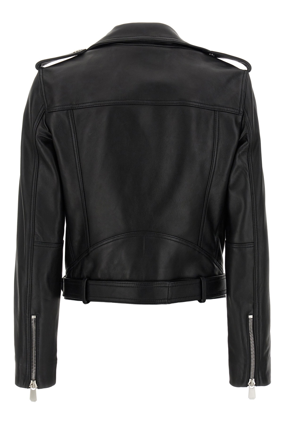 Nappa 'Costa Rica' bikers, asymmetric zip closure, pockets, long sleeves with zip on the bottom of the handle, removable belt, metal details, lining.