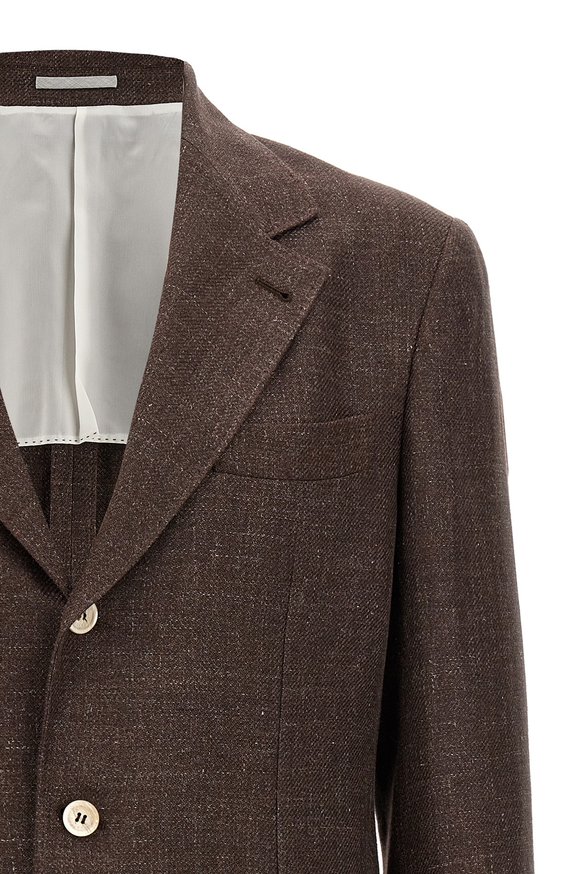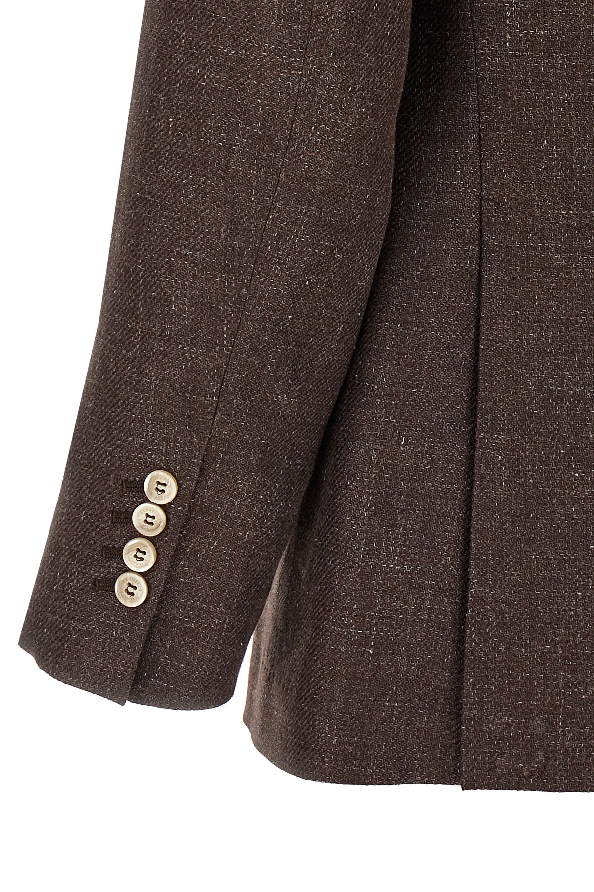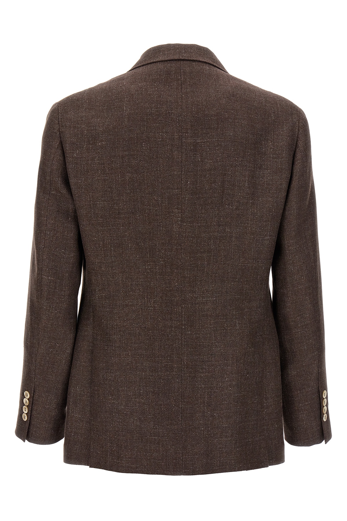 Deconstructed blazer in melange wool and silk blend, single-breasted model with button closure, mirror lapels, pockets, long sleeves, back vents.