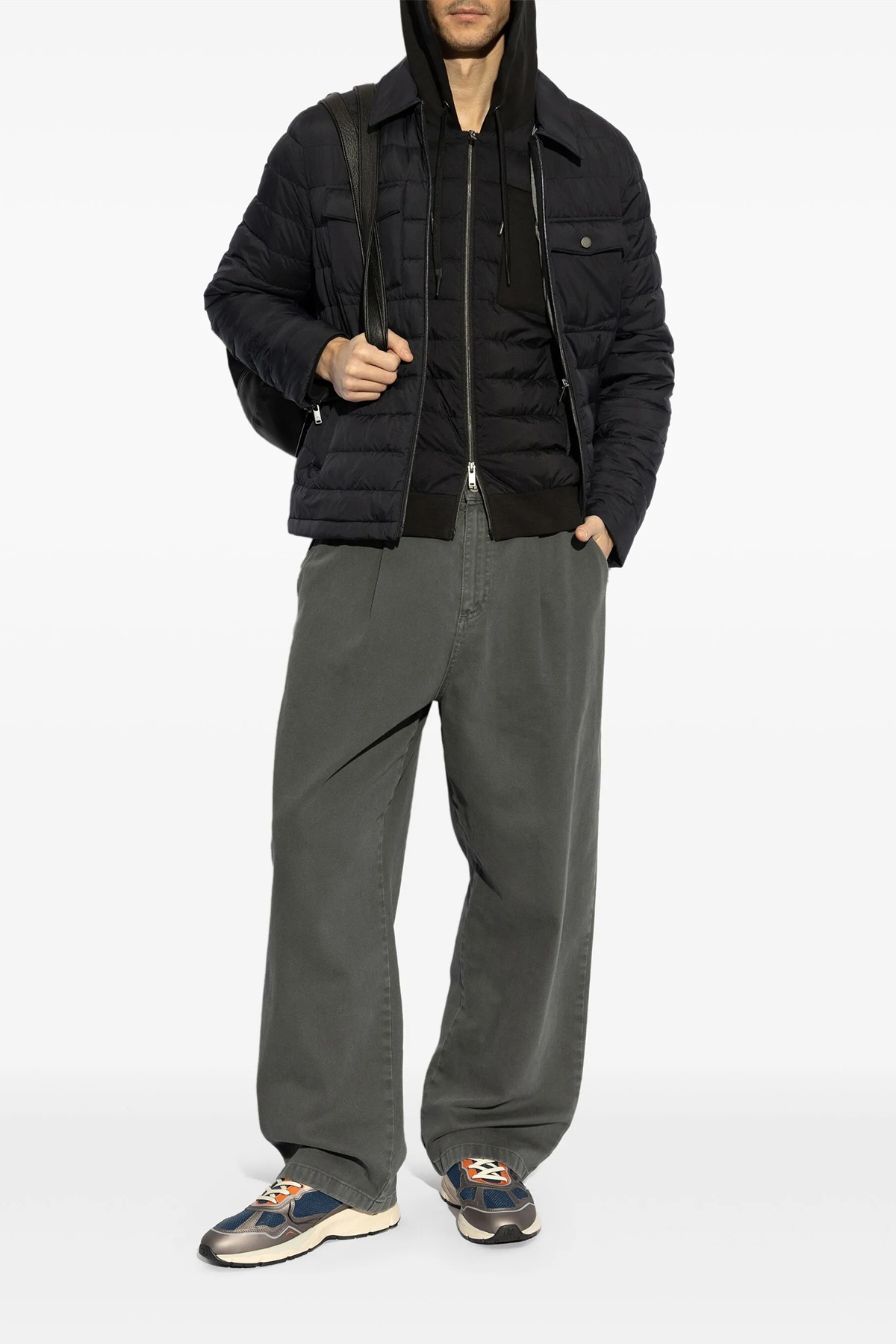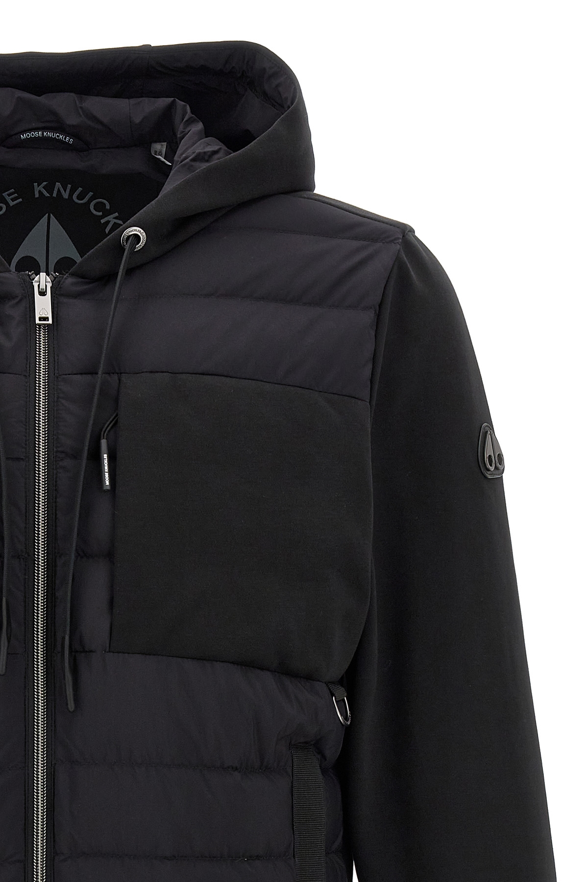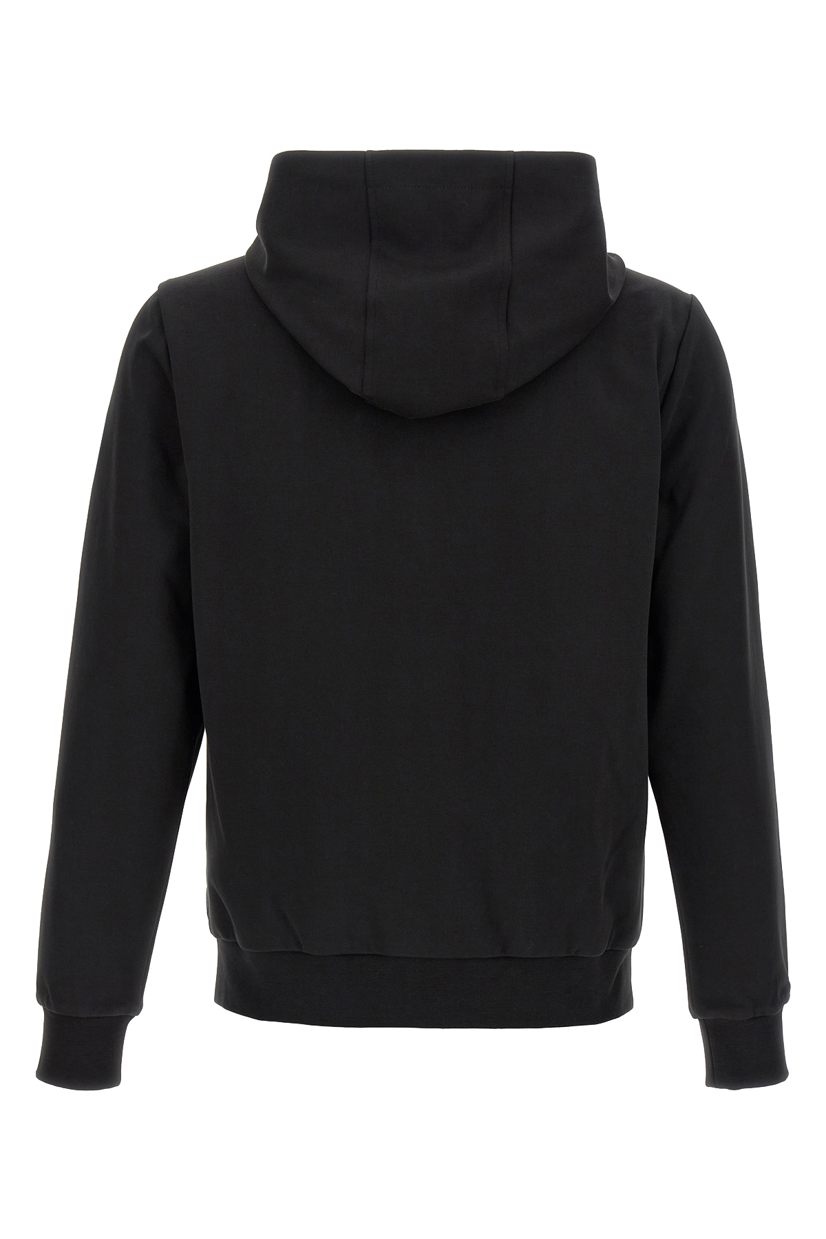 'Garnier' stretch cotton knit hoodie with slightly padded nylon front, zip closure, pockets, long cuffed sleeves and leather and metal logo patch.