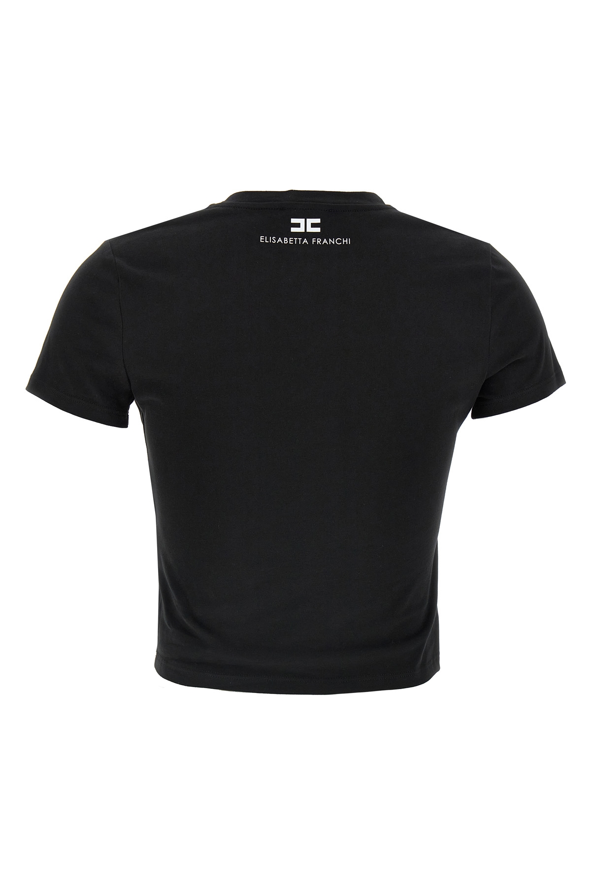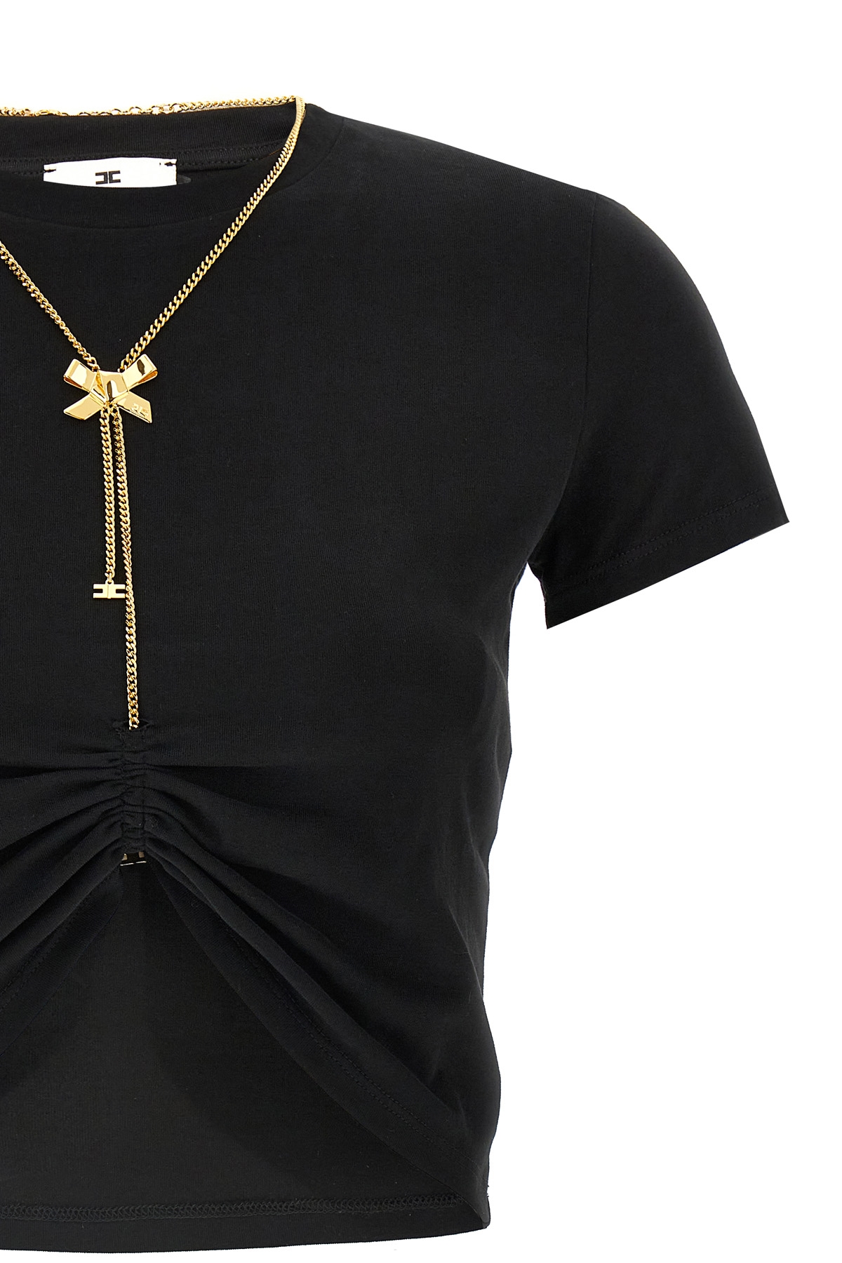 Cotton jersey cropped t-shirt with front curl and metal chain necklace inserted and removable, crew neck, short sleeves.