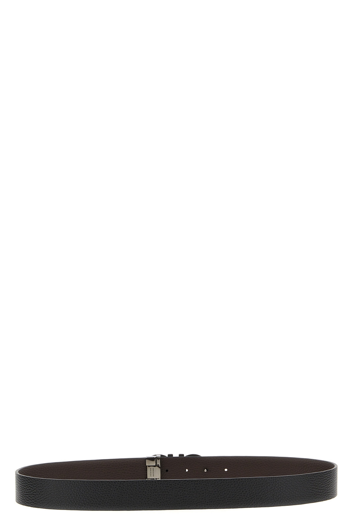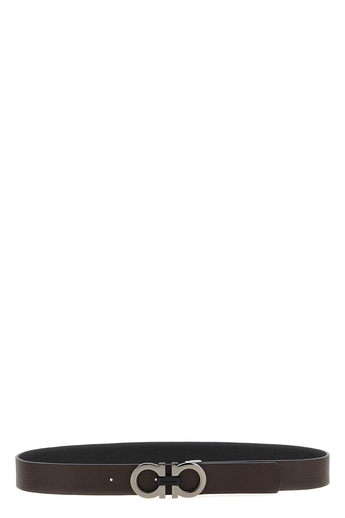 Reversible hammered leather belt with metal 'Gancini' buckle.