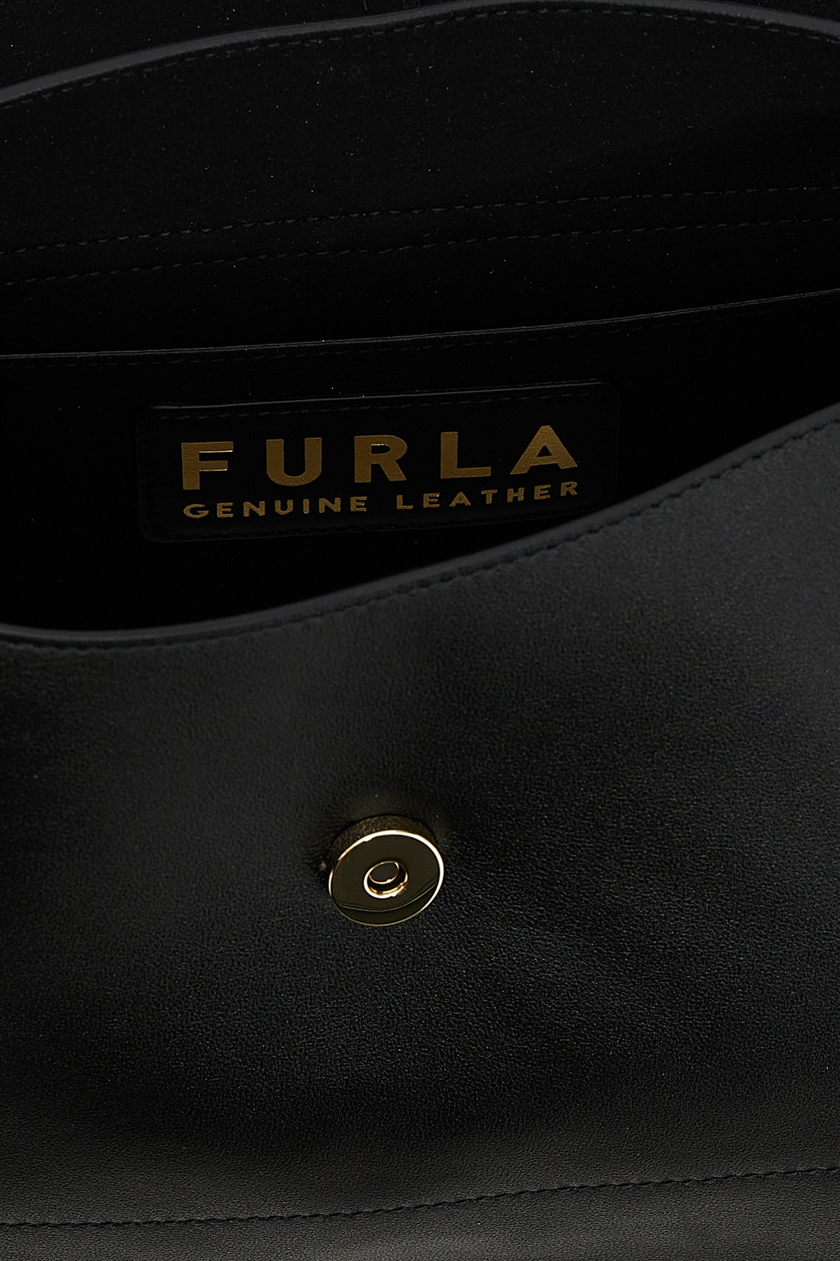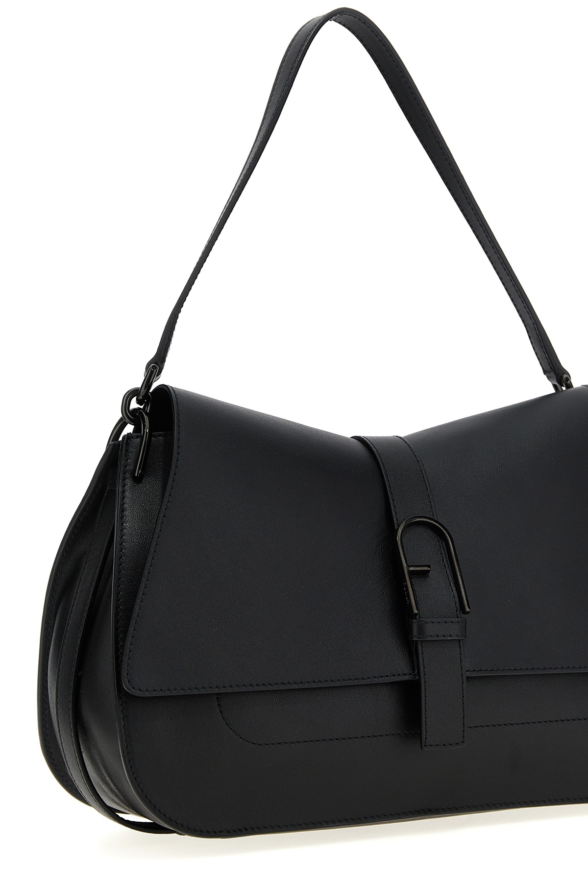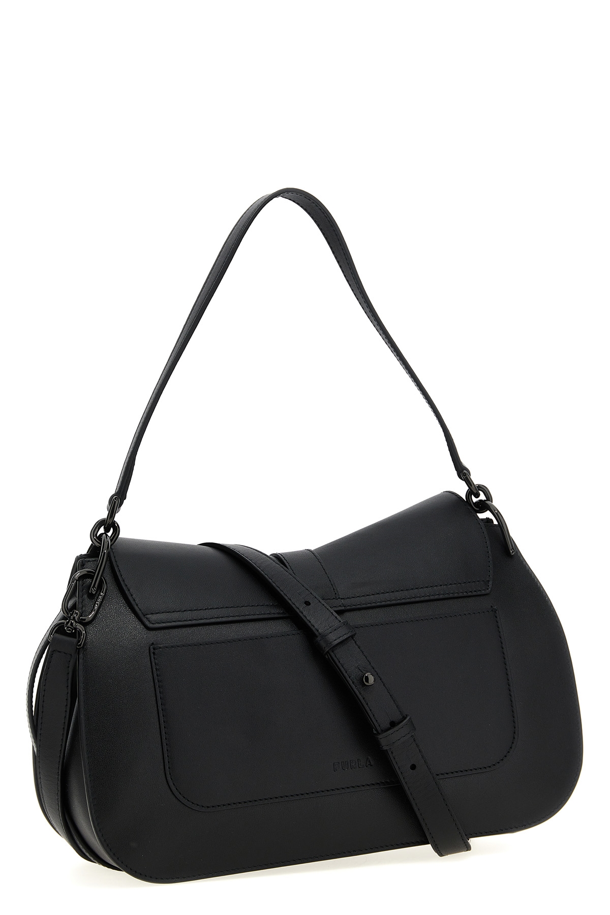 'Furla Flow L' leather handbag, magnetic flap closure with front metal logo decoration, fixed handle, adjustable and removable shoulder strap, back pocket.