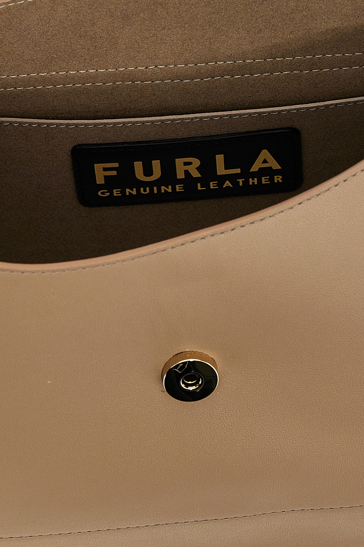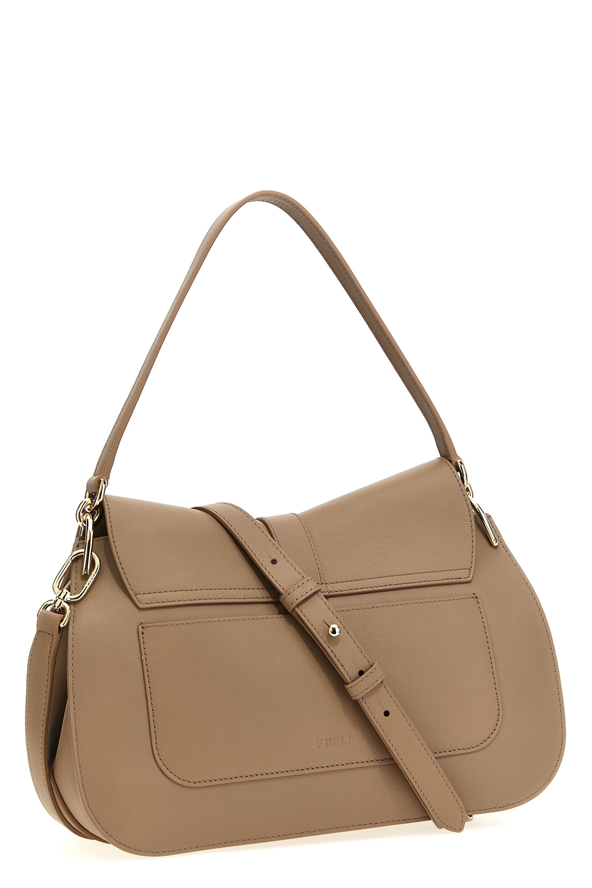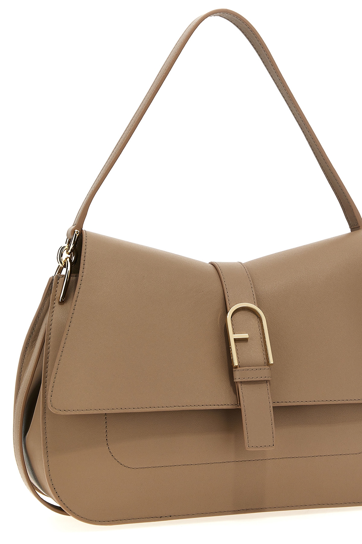 'Furla Flow L' leather handbag, magnetic flap closure with front metal logo decoration, fixed handle, adjustable and removable shoulder strap, back pocket.