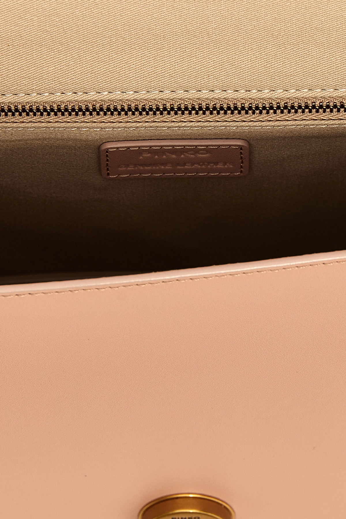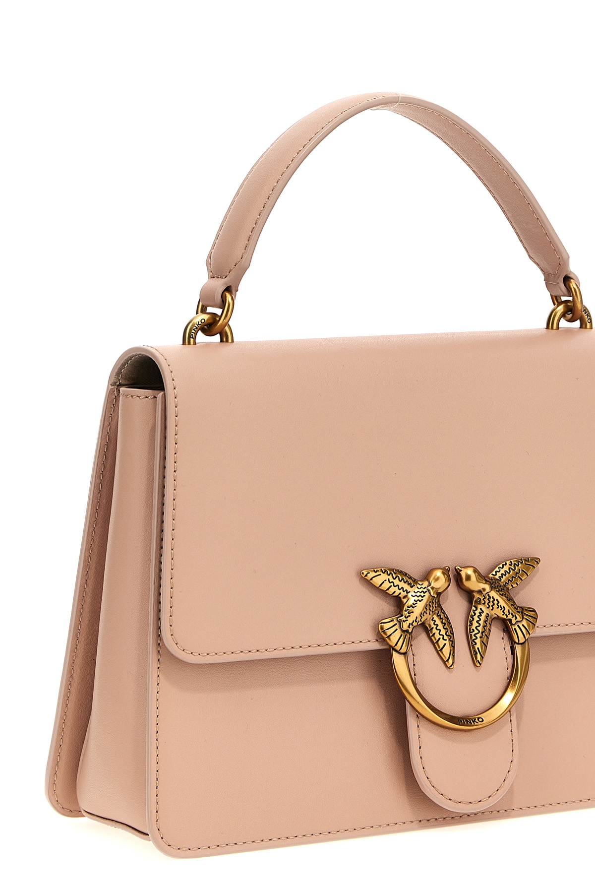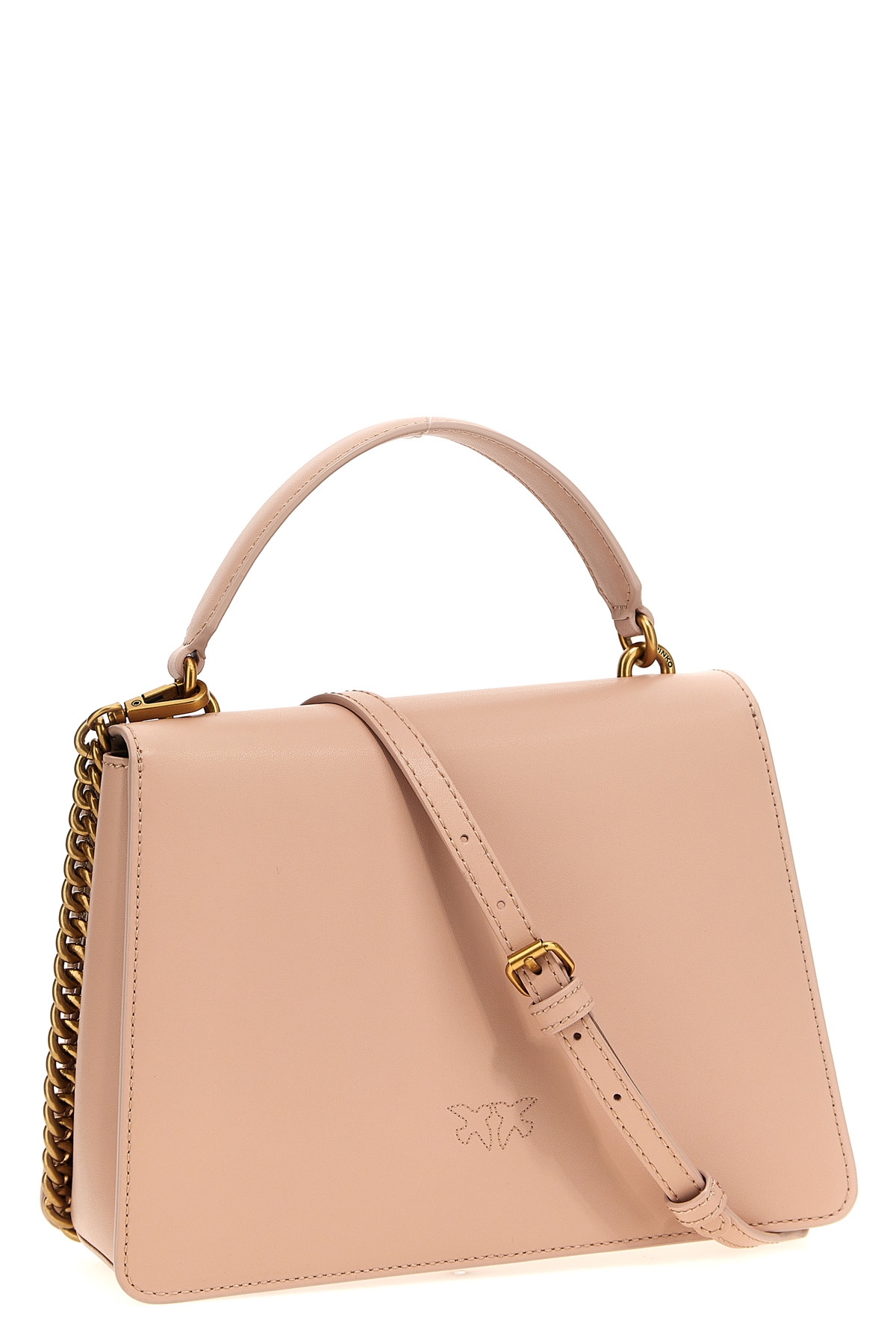 'Love One Top Handle Classic' leather handbag with magnetic flap closure with front metal logo applique, handle, chain shoulder strap and removable leather.