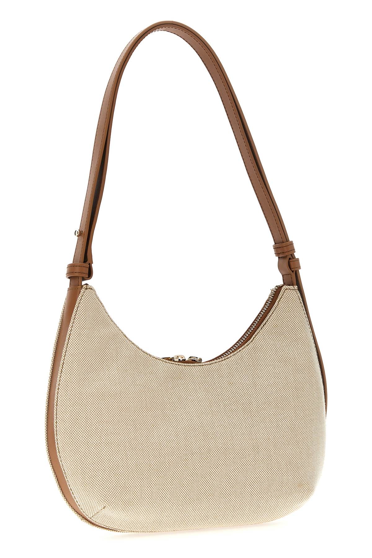 'Furla Goccia S' canvas shoulder bag with leather details, zip closure with cylindrical hardware in glossy finish with Arco logo on one of the two leather pullers, leather tin, zip closure with cylindrical hardware in glossy finish with Arco logo on one of the two leather pullers, adjustable shoulder strap. Adjustable.