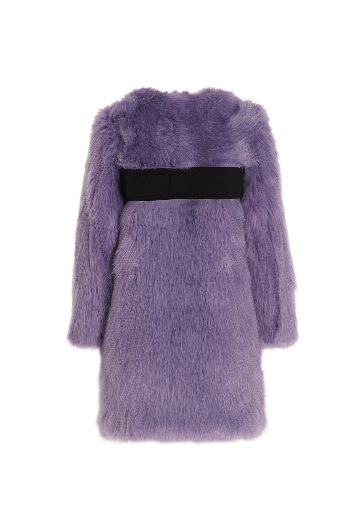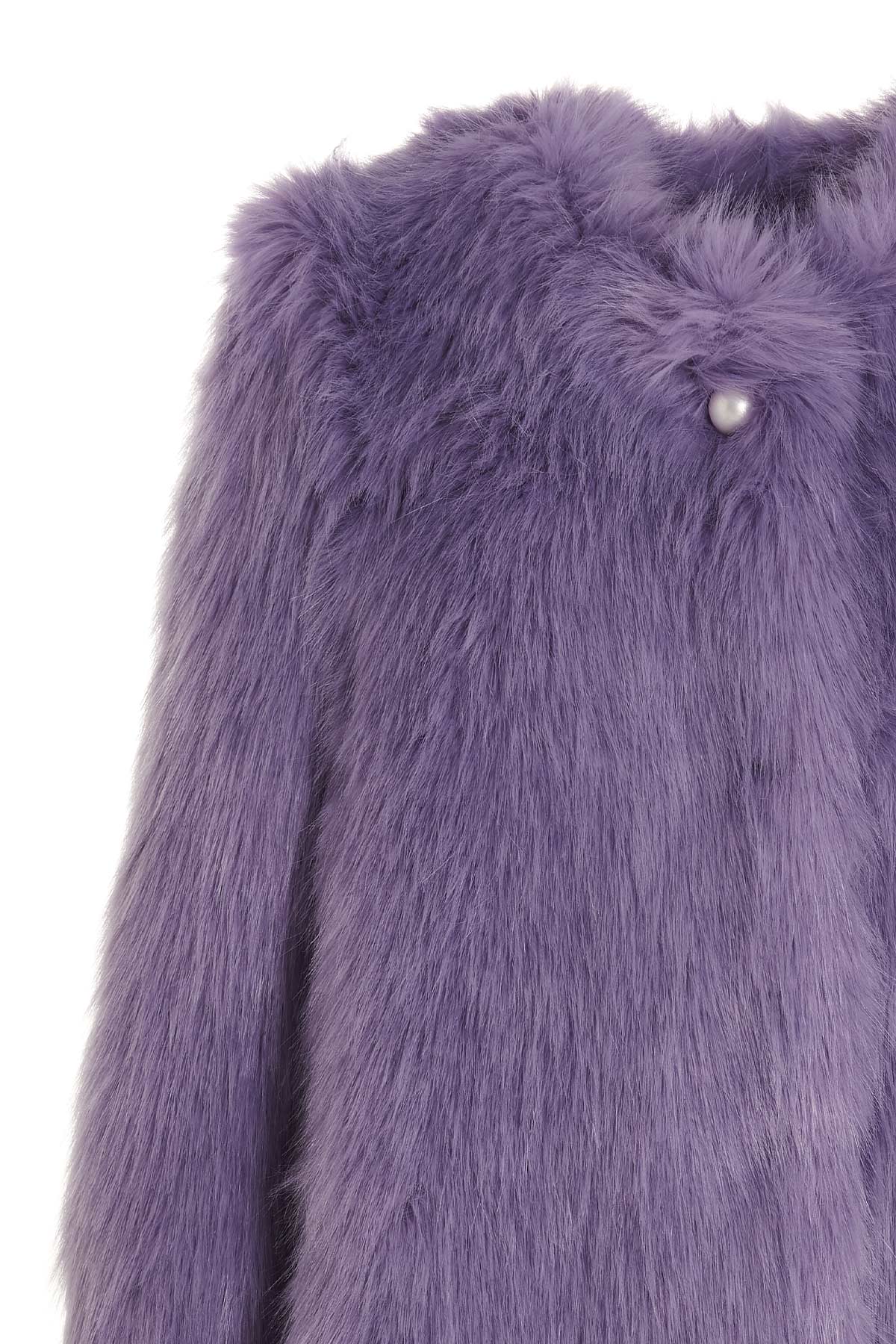 Kate' eco fur coat with button closure, maxi pearl button detail, pockets and long sleeves.