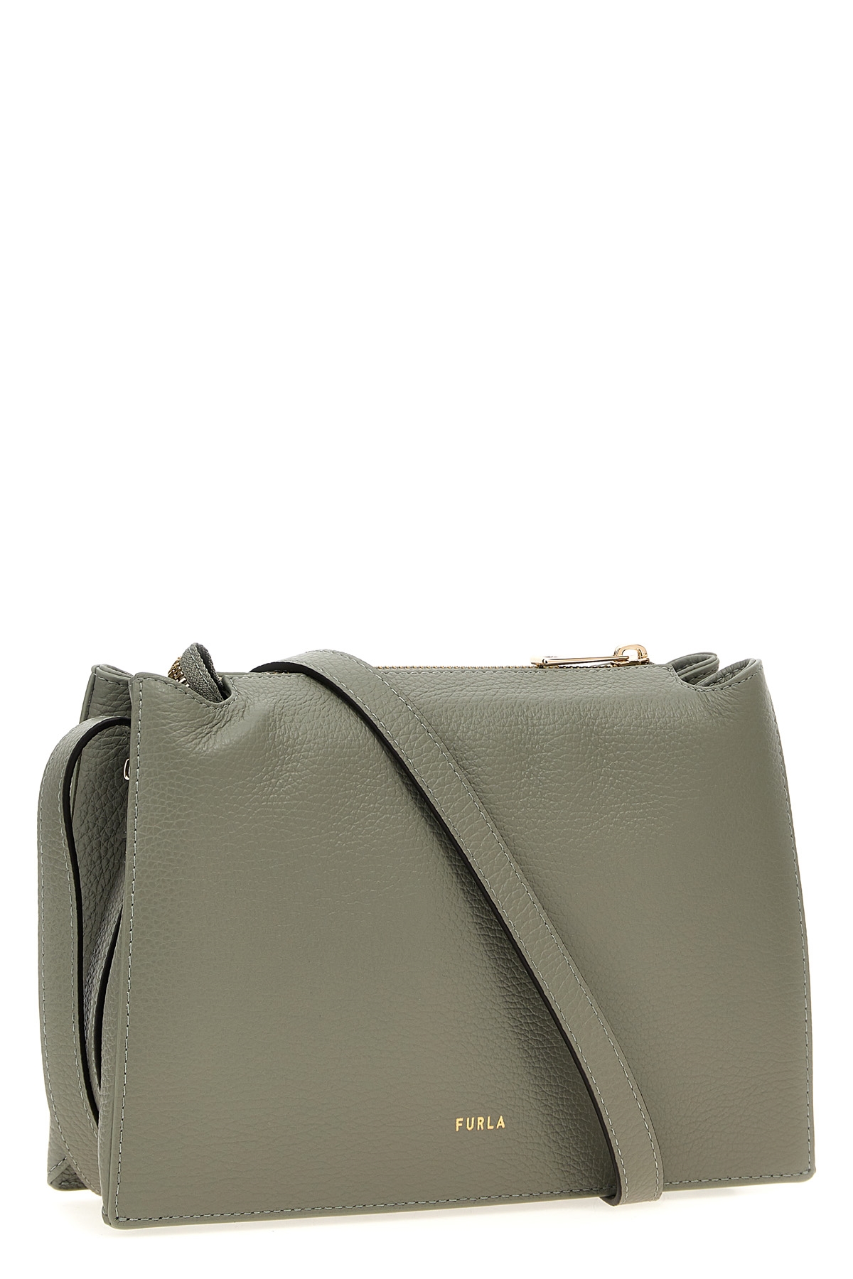 'Furla Nuvola S' hammered leather crossbody bag, zip closure, shoulder strap with adjustable metal logo detail.