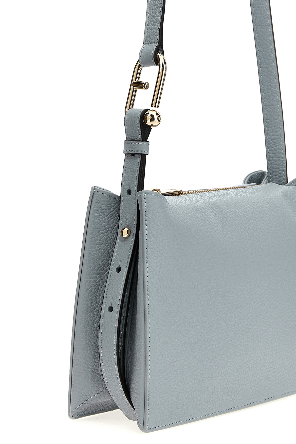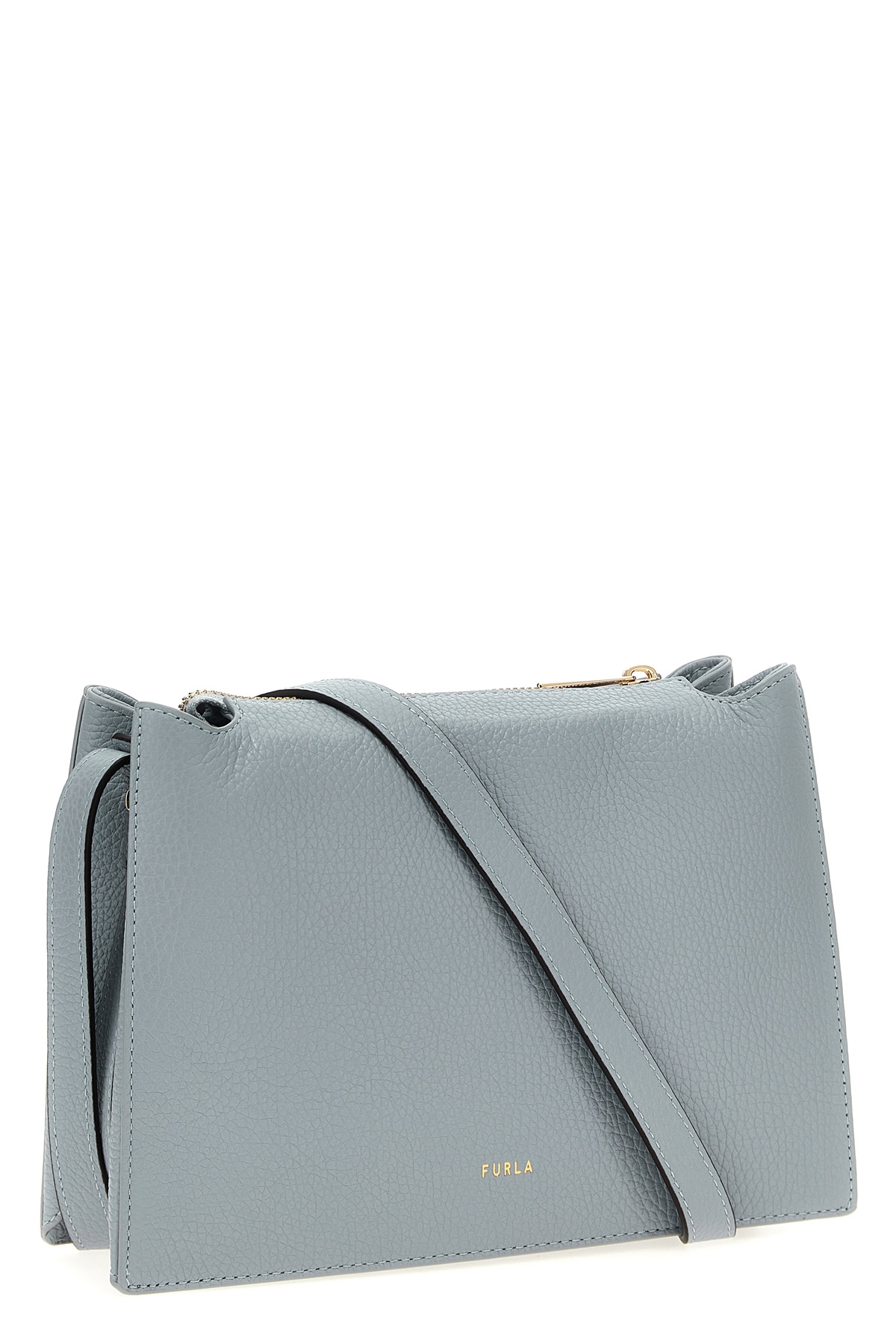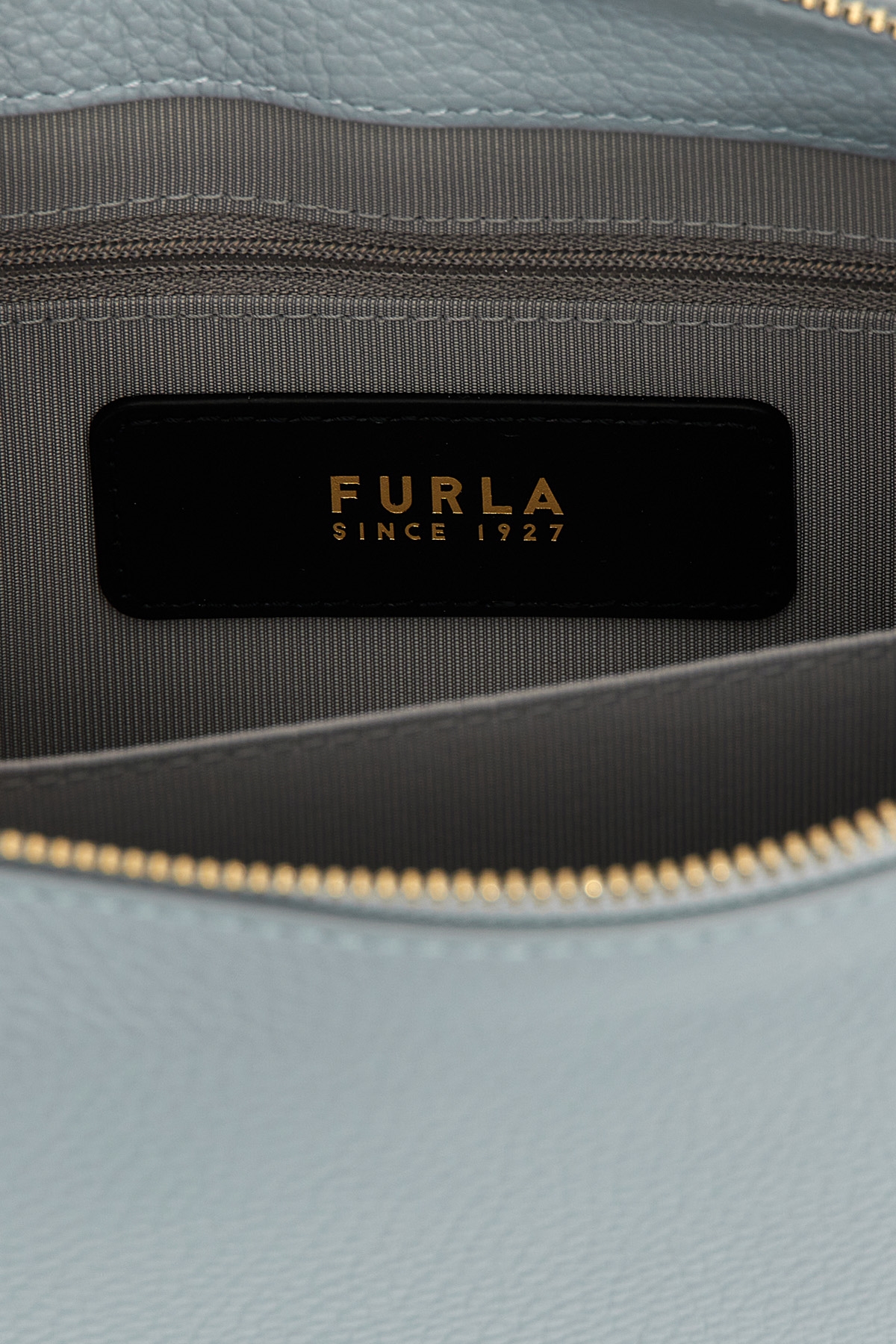 'Furla Nuvola S' hammered leather crossbody bag, zip closure, shoulder strap with adjustable metal logo detail.