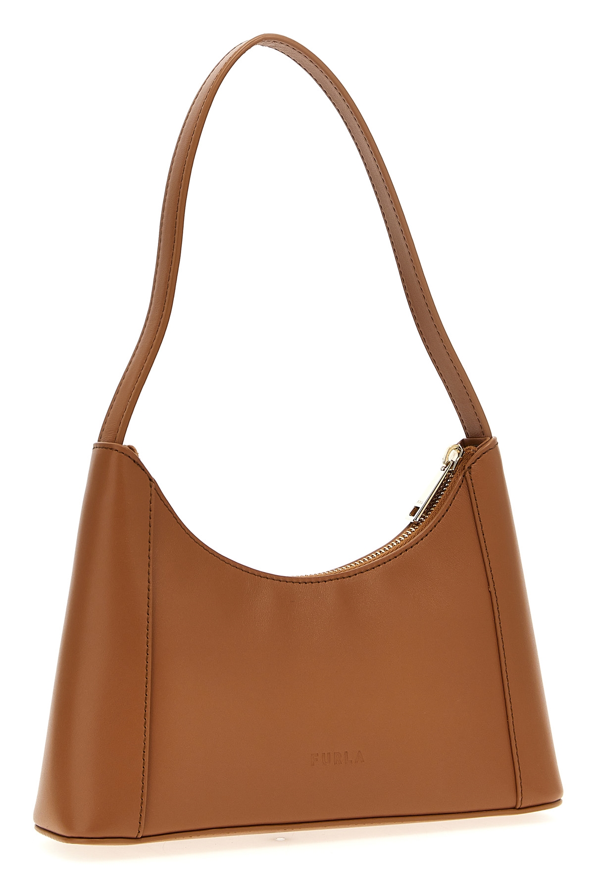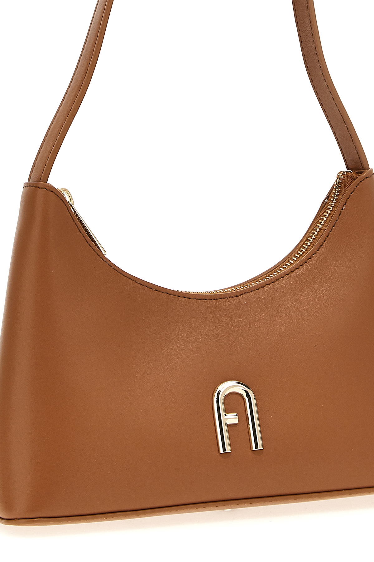 'Furla Diamante' mini leather shoulder bag with front metal logo, zip closure, fixed handle.