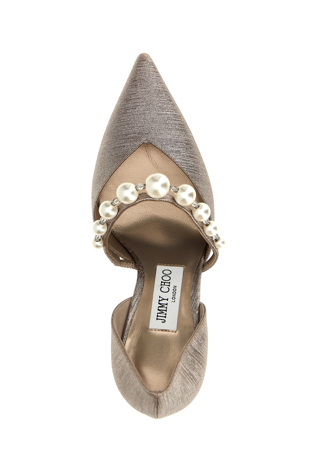 'Aurelie' pumps in glitter fabric, pointed model, elastic strap decorated with pearls and crystals on the front, heel, leather sole.