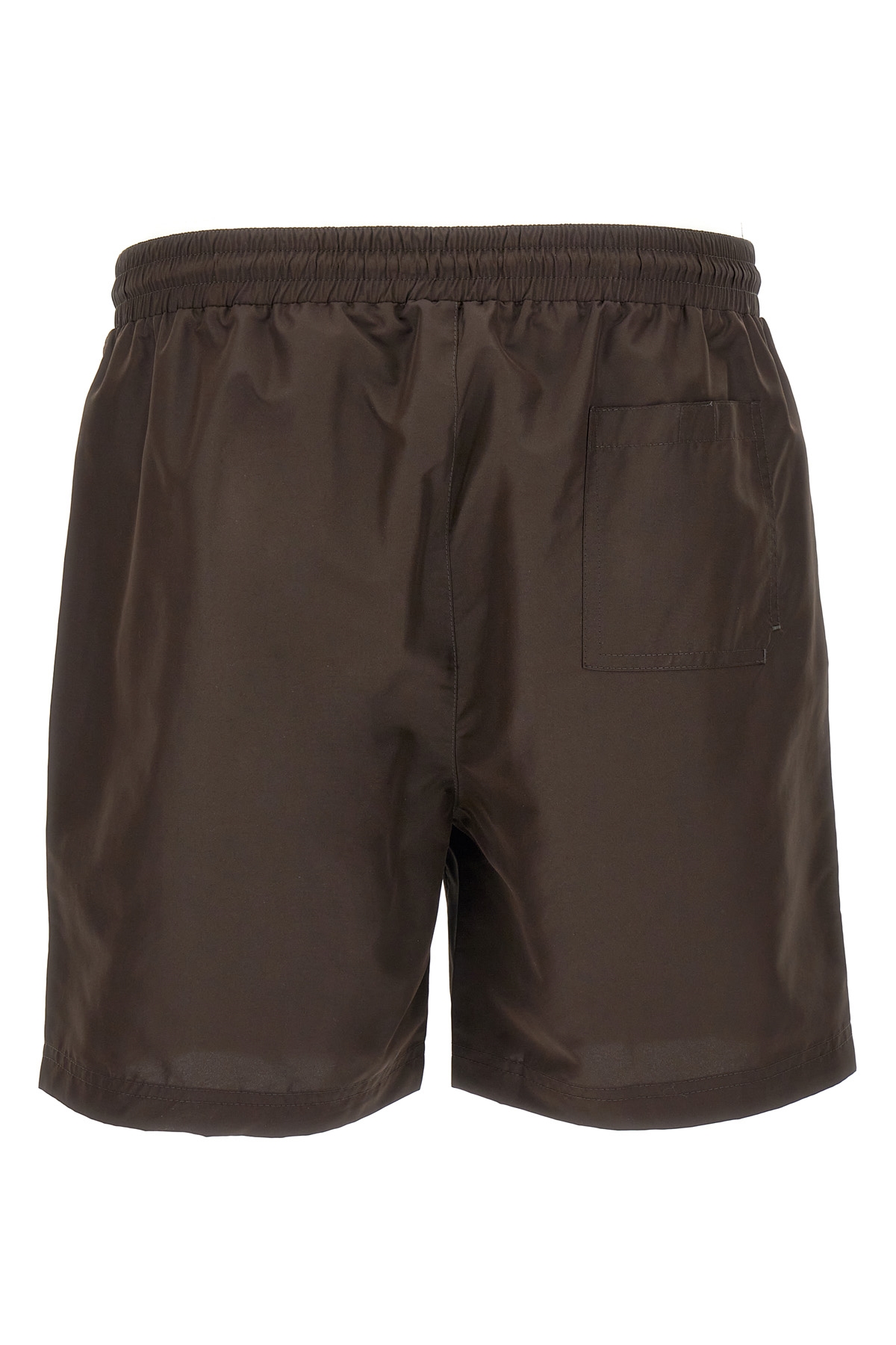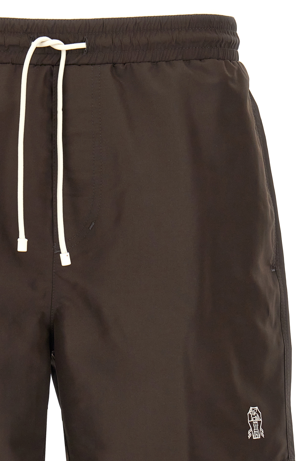 Nylon swimsuit, elastic and adjustable drawstring at the waist, contrast front logo embroidery, pockets, inner mesh briefs.