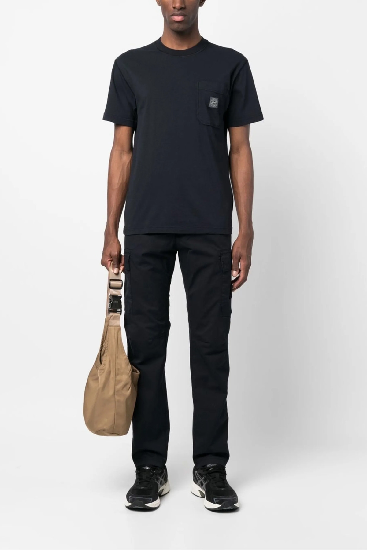 Cargo pants in stretch cotton with logo badge application, zip and button closure, pockets, tapered leg.