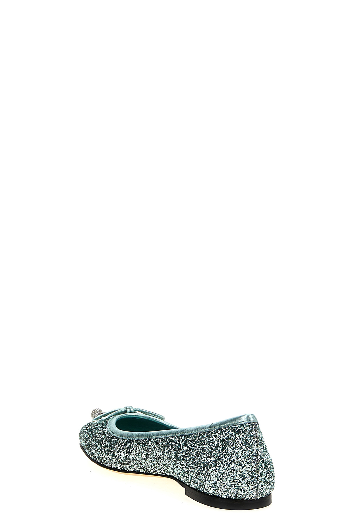 'Elme' ballet flats in glitter-covered fabric with bow application, pearl embellished with logo and rhinestone detail.