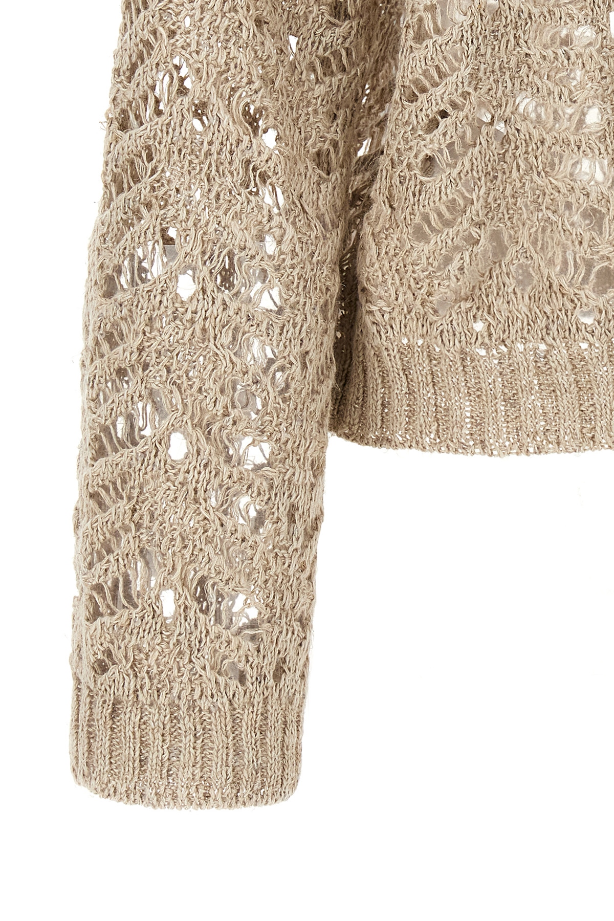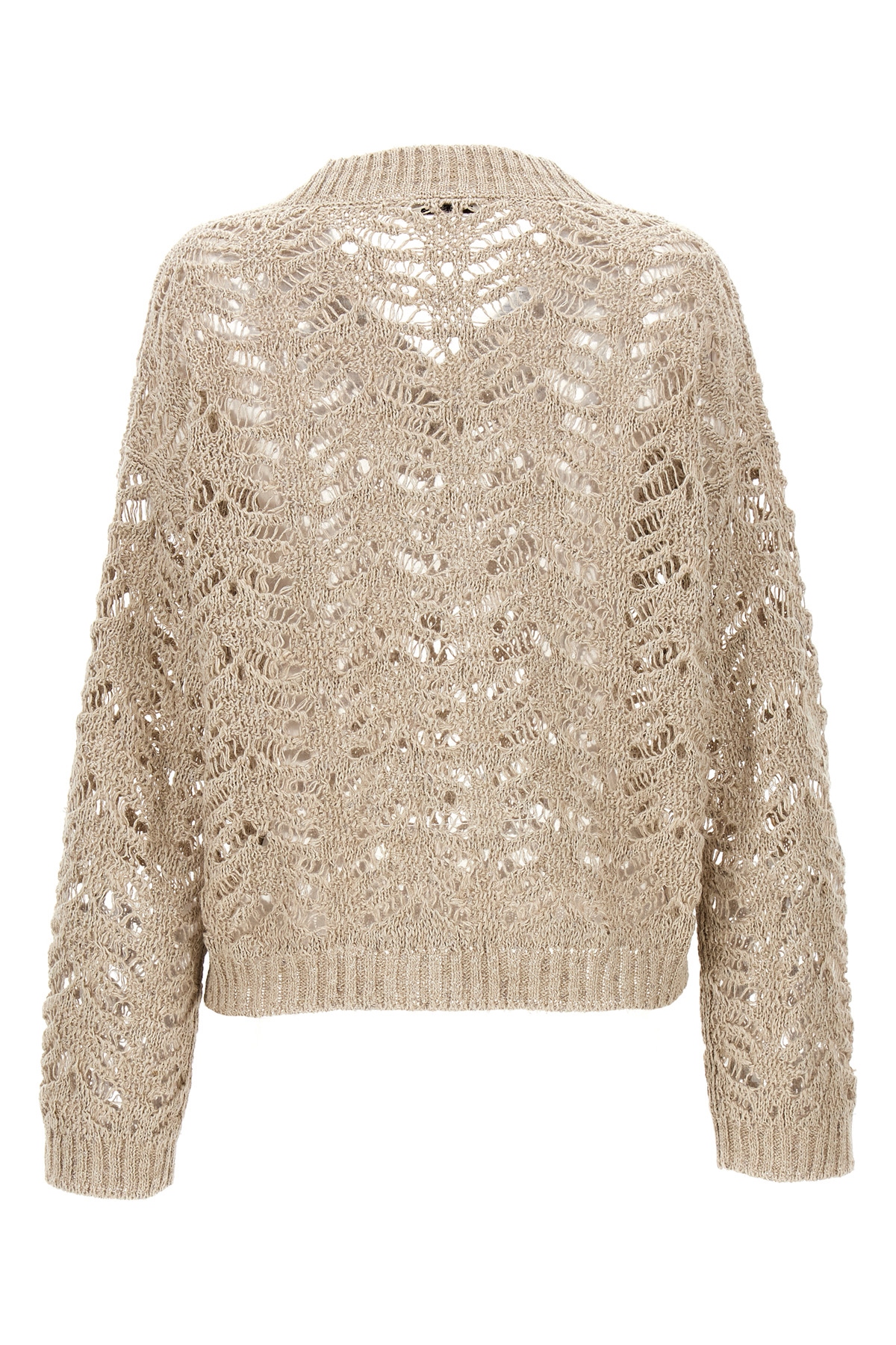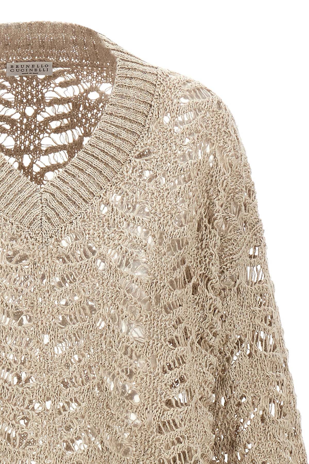 Rustic Dazzling Net' silk and linen blend mesh sweater with all-over sequin applique, V-neck, long sleeves with cuffs and dropped shoulder.