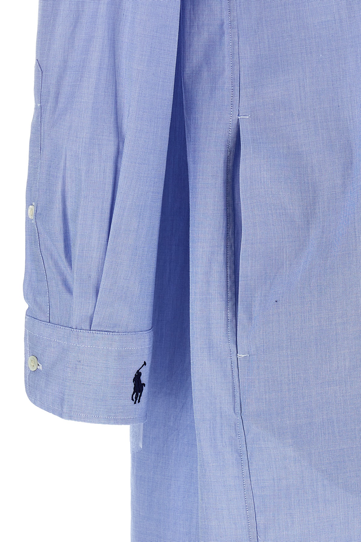 Cotton tunic midi dress with collar and buttons, side slits, long cuffed sleeves.