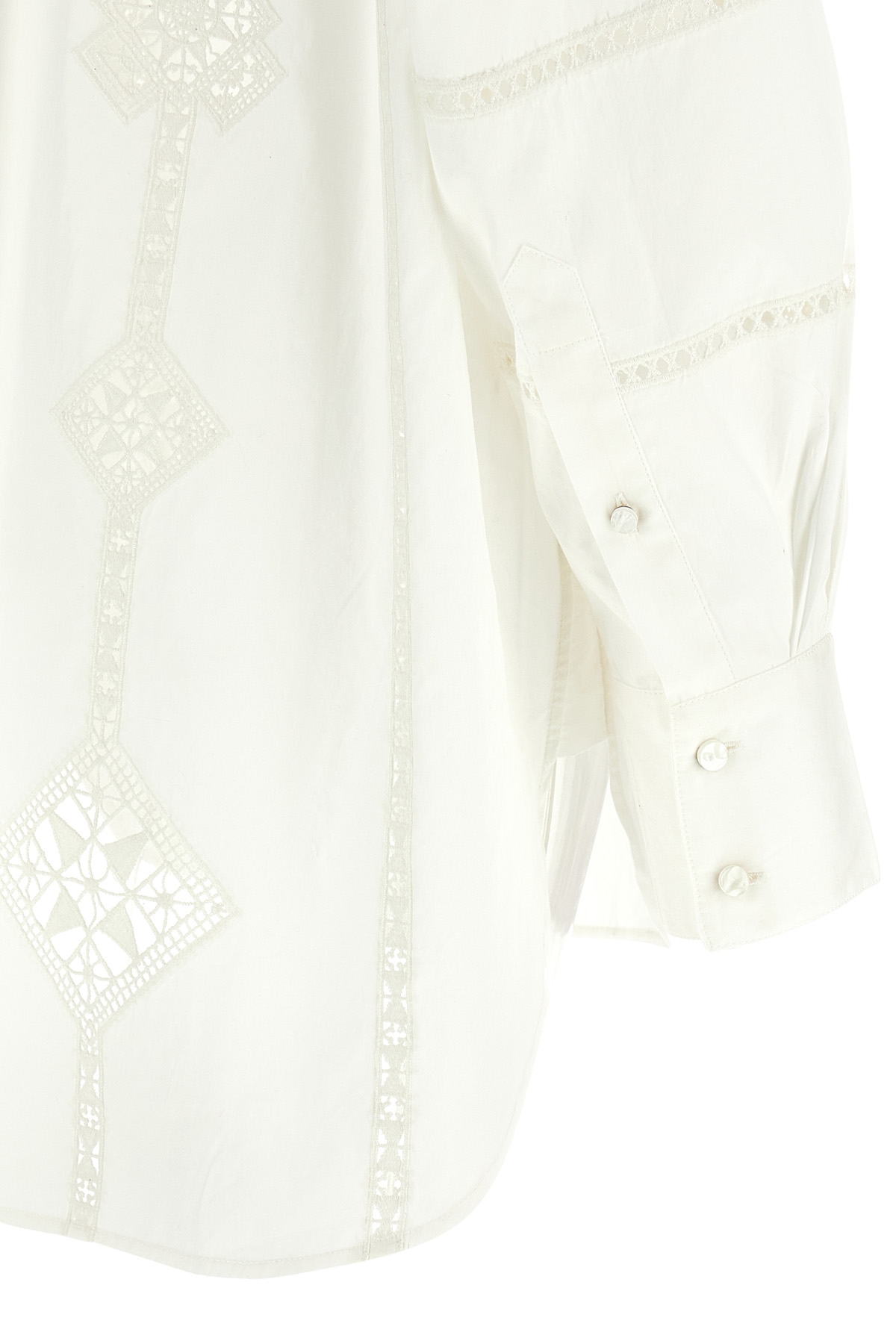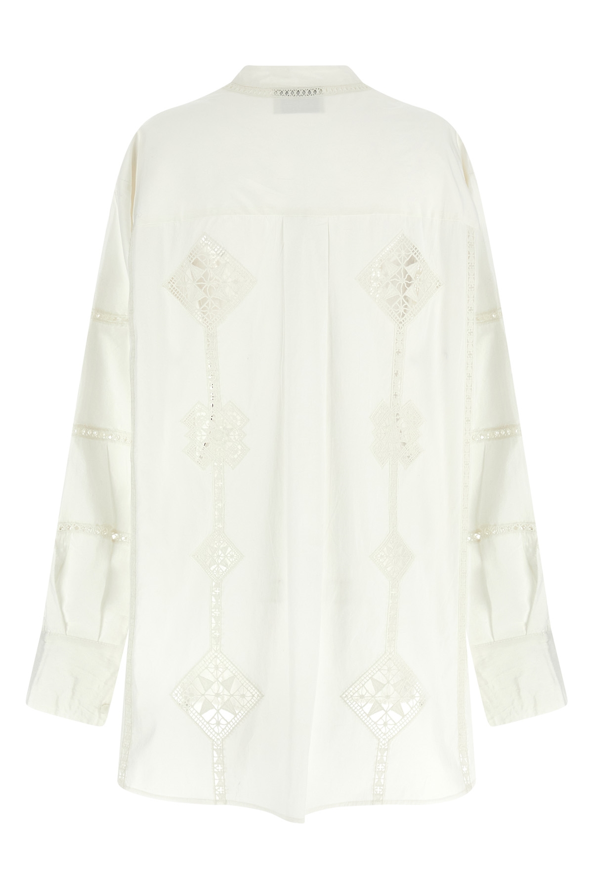 'Soeline' shirt in perforated cotton poplin with broderie anglaise details, crew neck, button closure, long sleeves with cuffs and dropped shoulders.