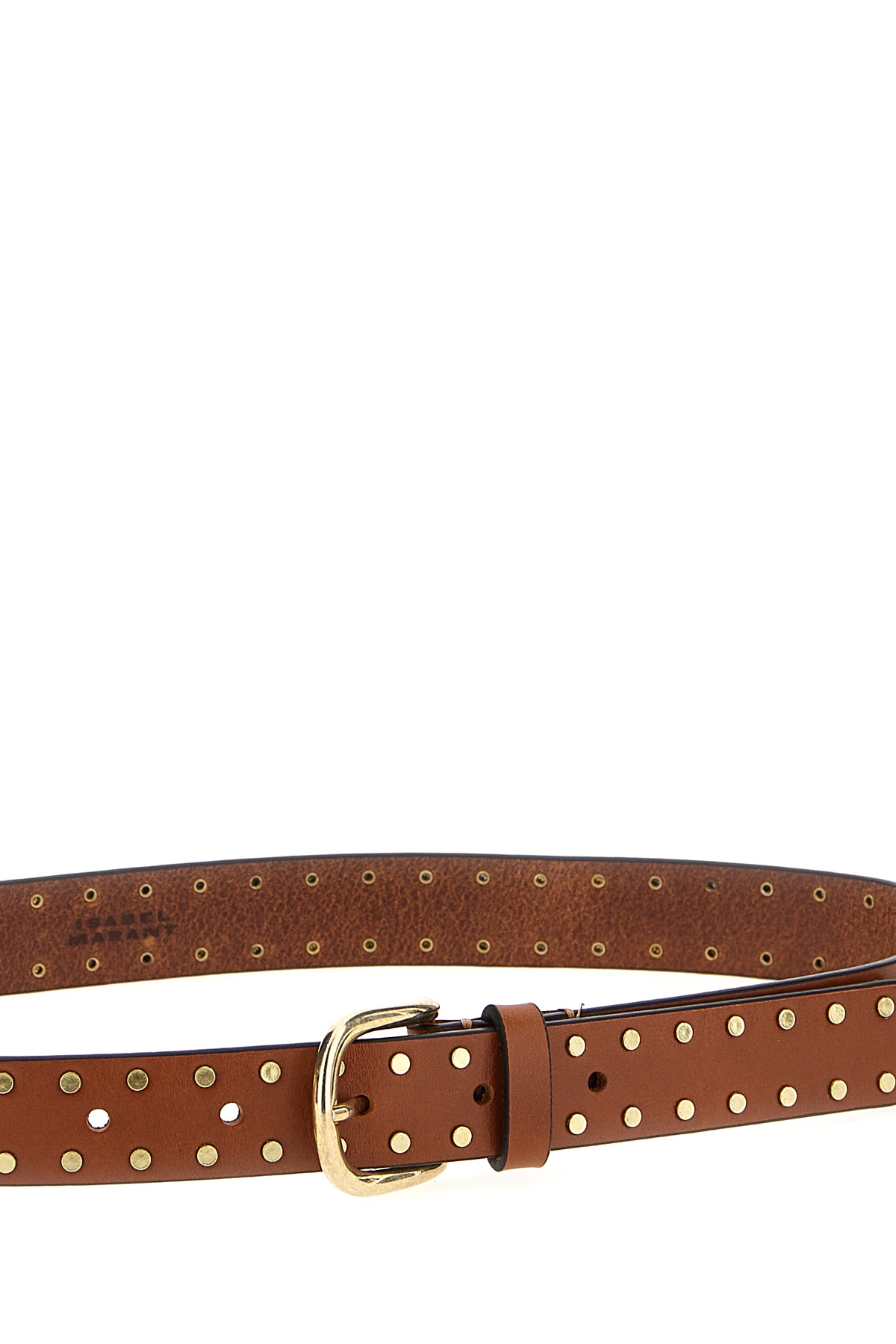 'Zap' leather belt with all-over stud applique and metal buckle.