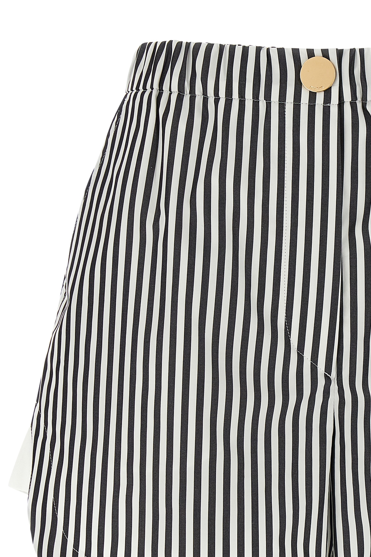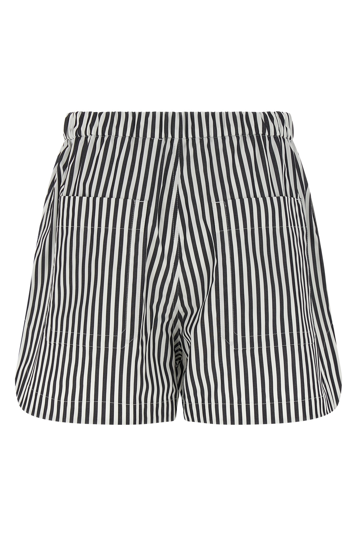 'Muscari' shorts in striped cotton poplin with elastic waistband, button flap, pockets, side slits.