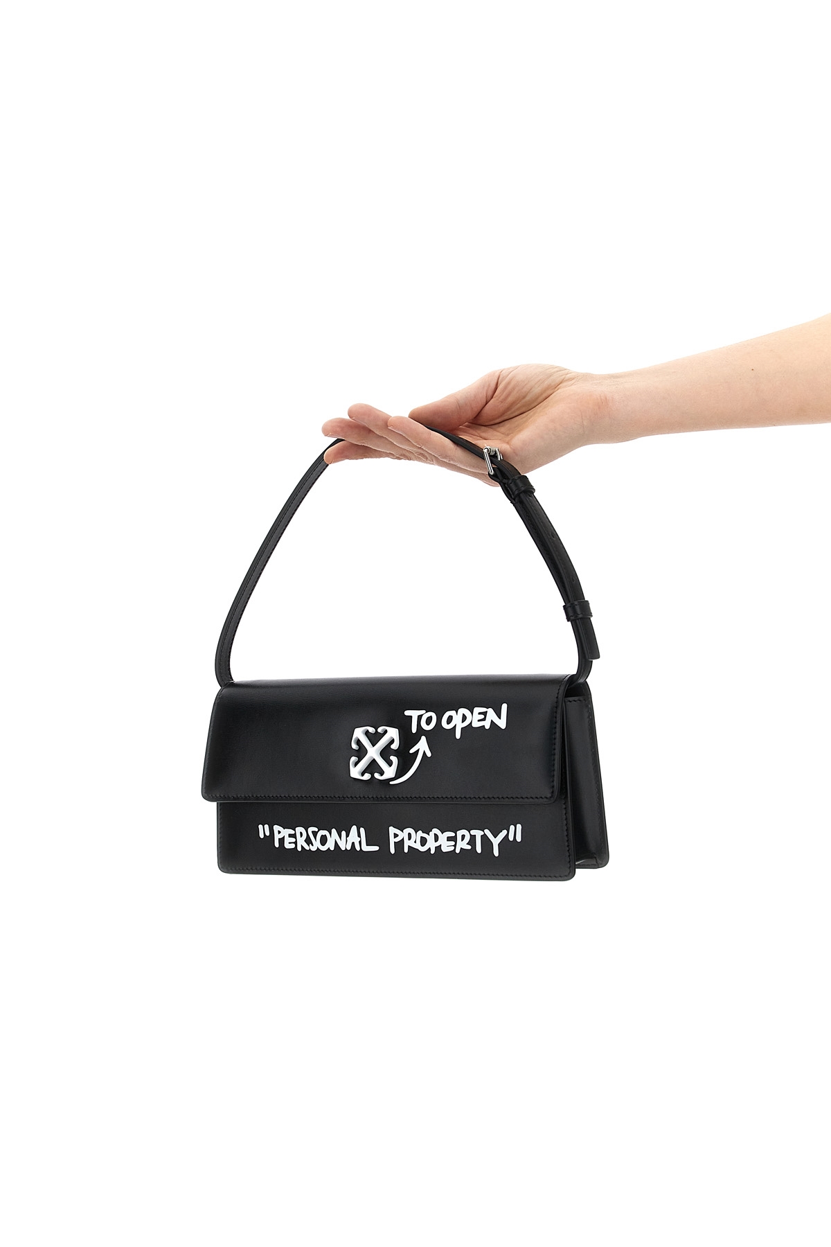 Jitney 1.0' leather shoulder bag with contrasting graphic print, adjustable handle, magnetic flap closure, metal 'Arrow' logo on the front, pocket.