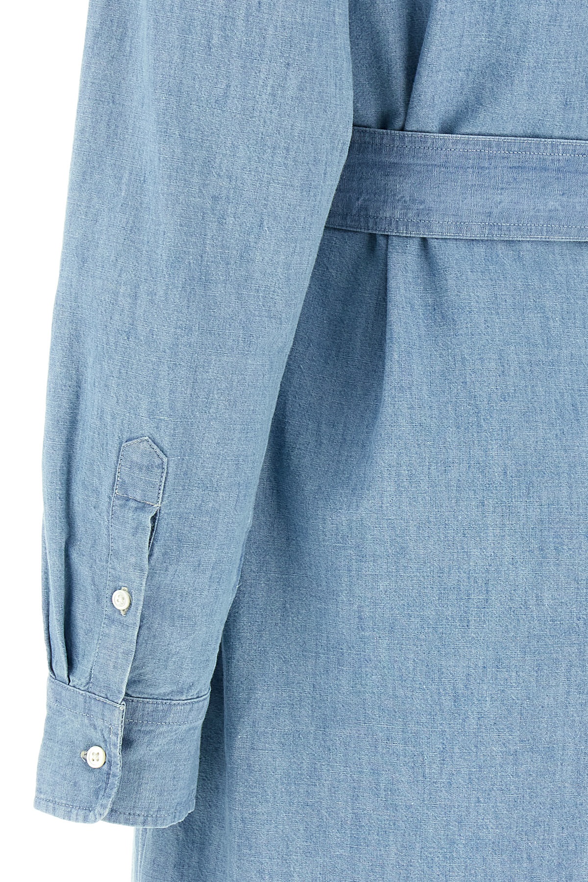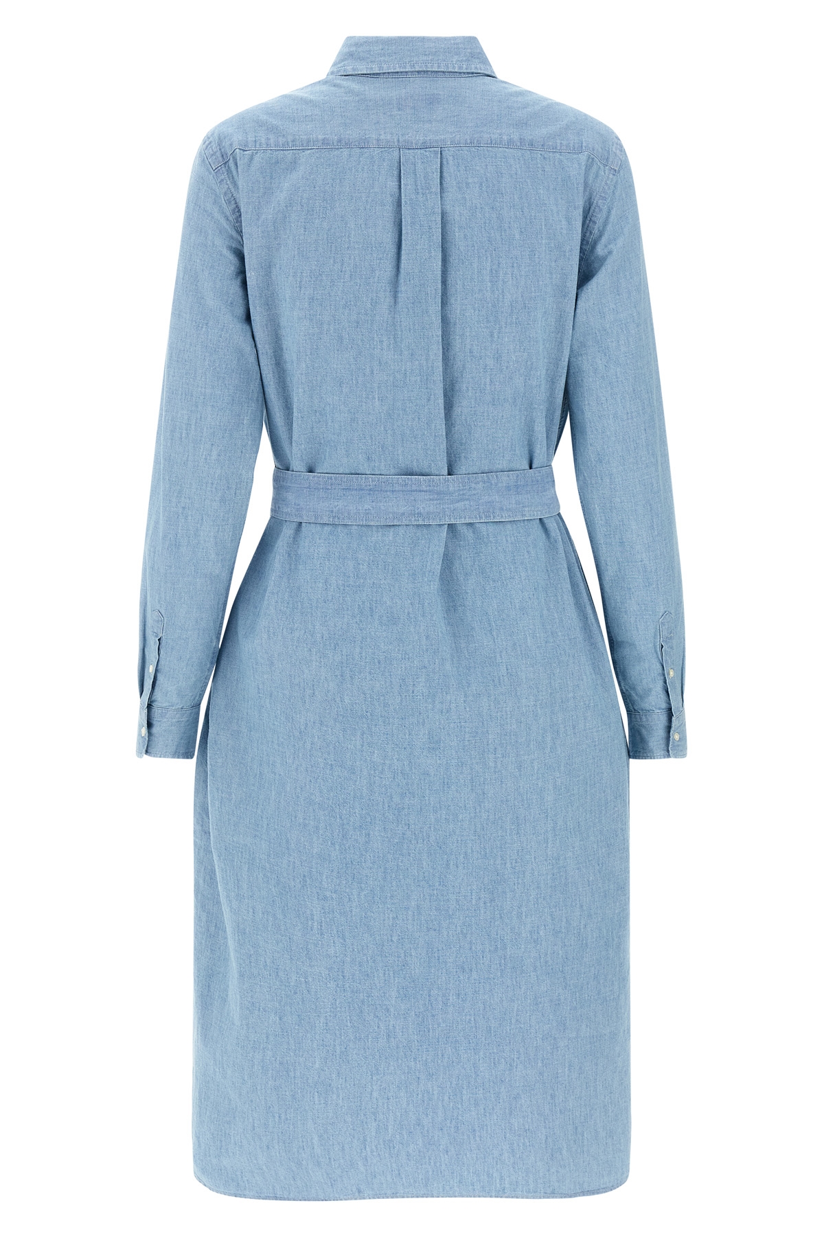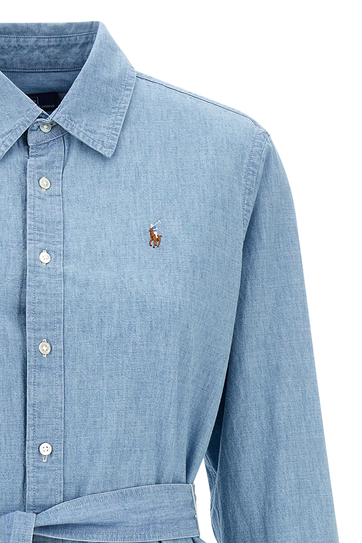 Oxford cotton dress, chemisier model, contrasting front logo embroidery, button closure, belt at the waist, side slits, long sleeves with cuffs, pockets..