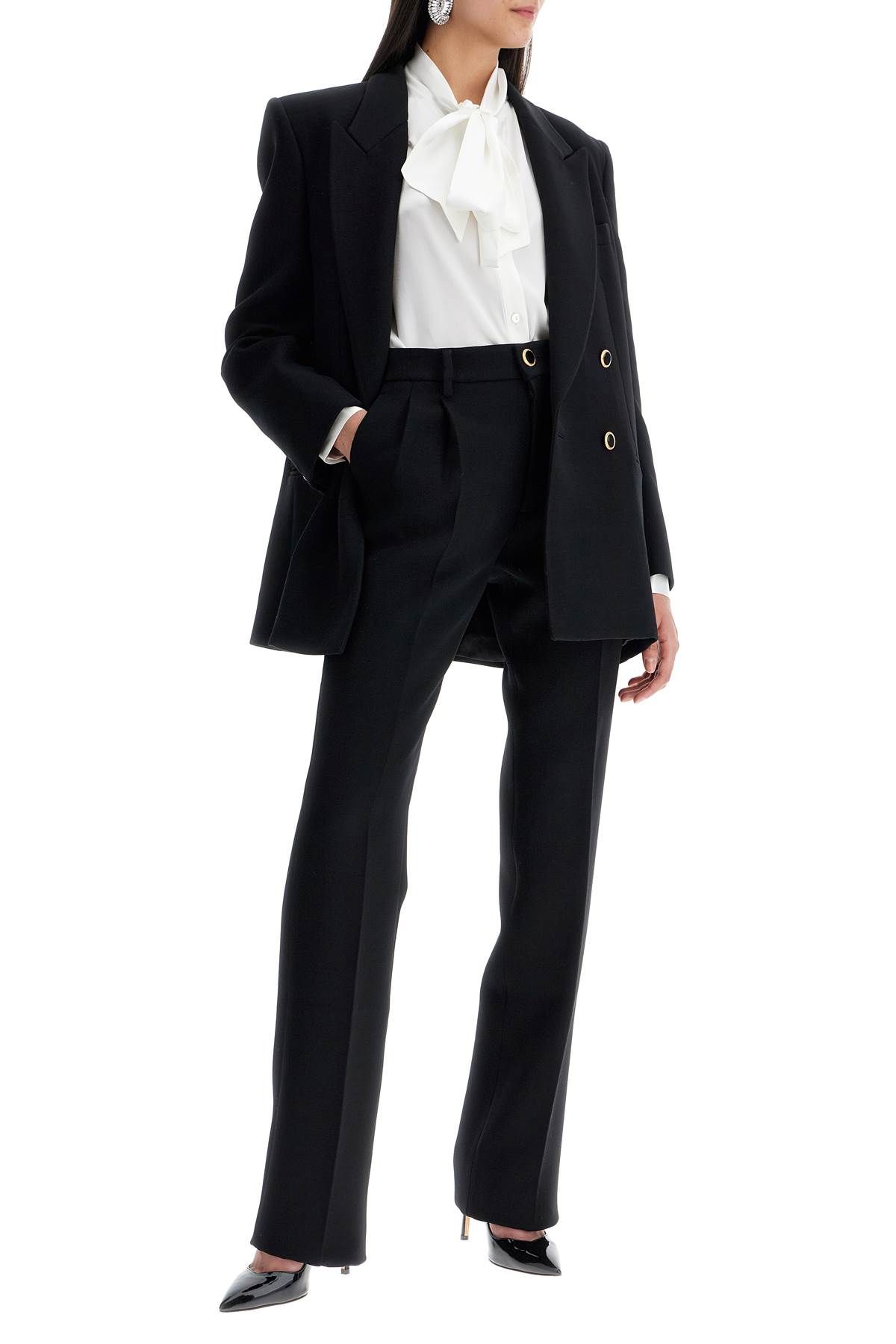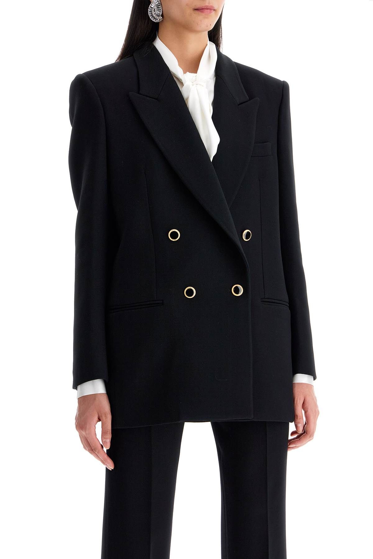Alessandra Rich's double-breasted blazer is made of wool and features a pointed lapel, slit pockets, and an oversized fit