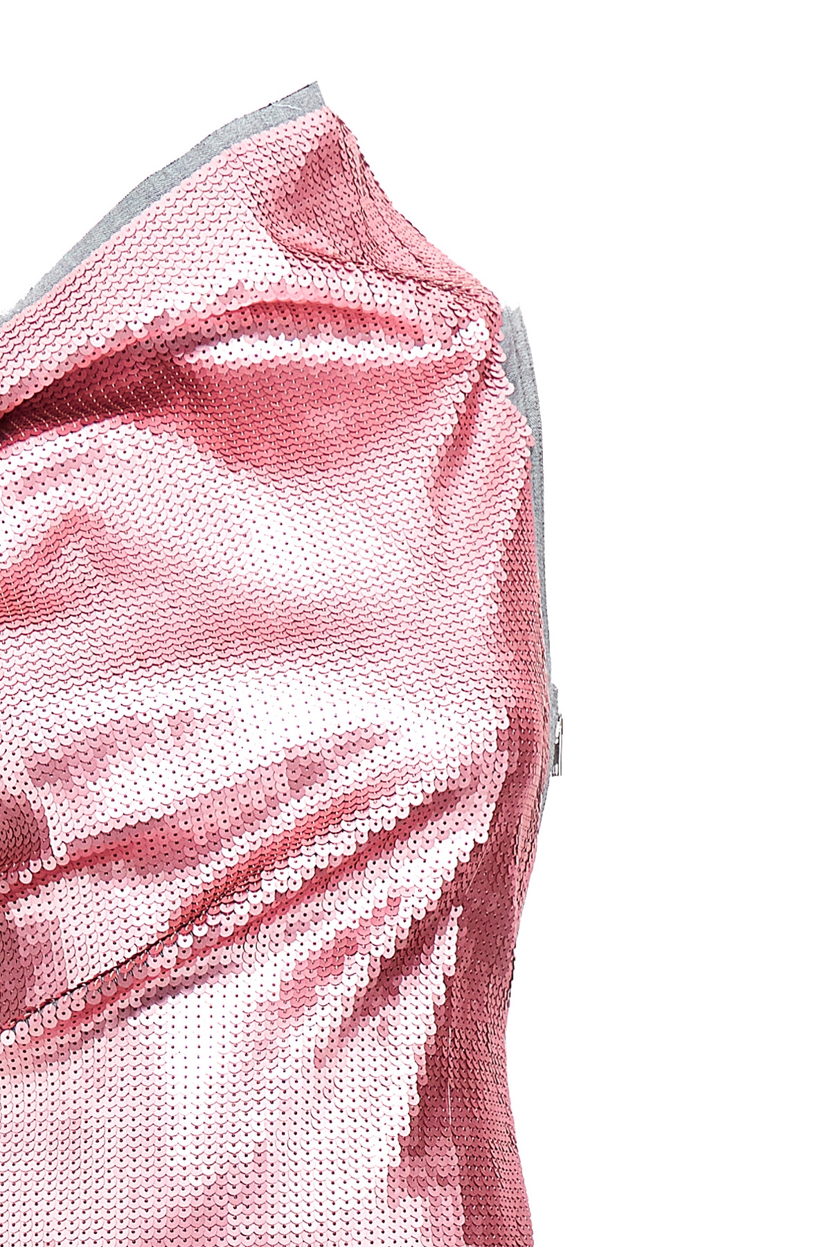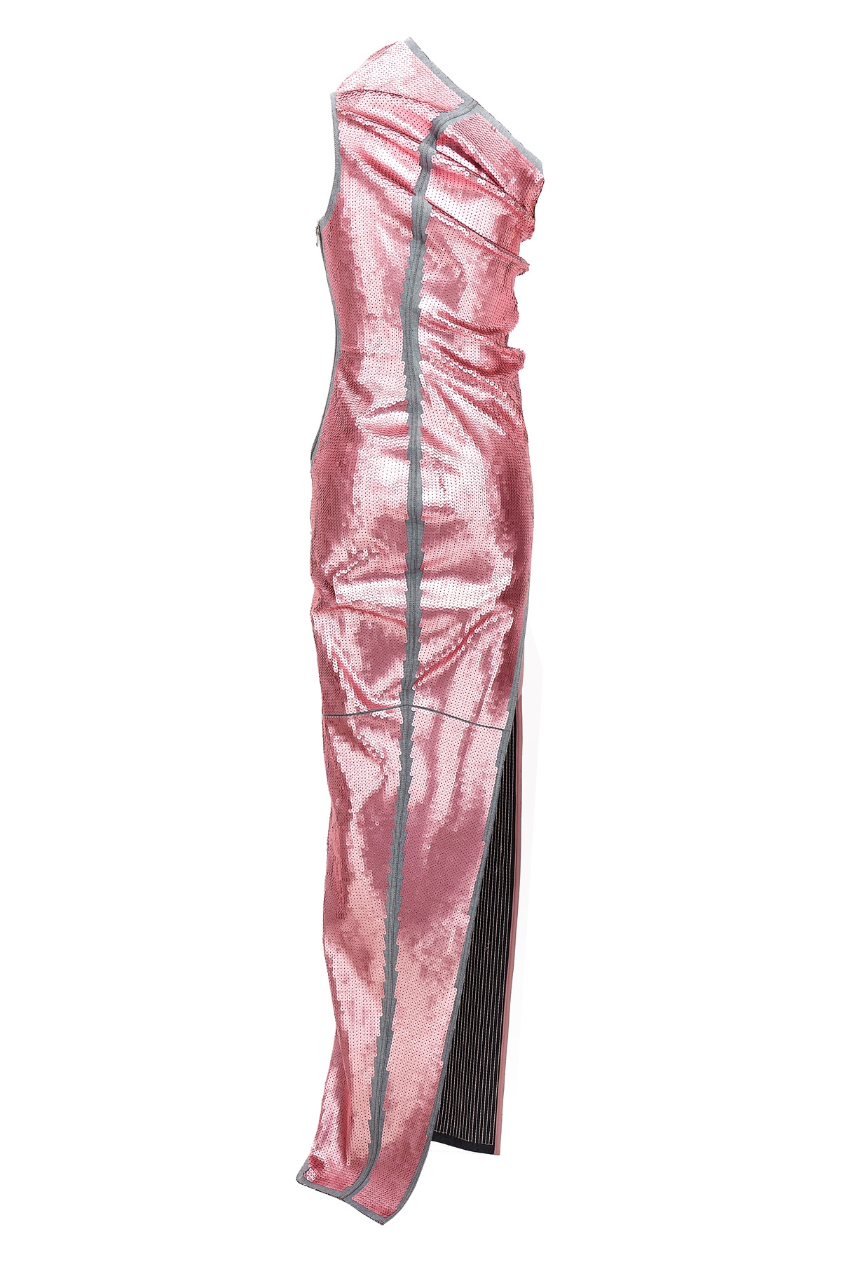 Long 'Athena' denim dress entirely covered in sequins, long one-shoulder model with slit.