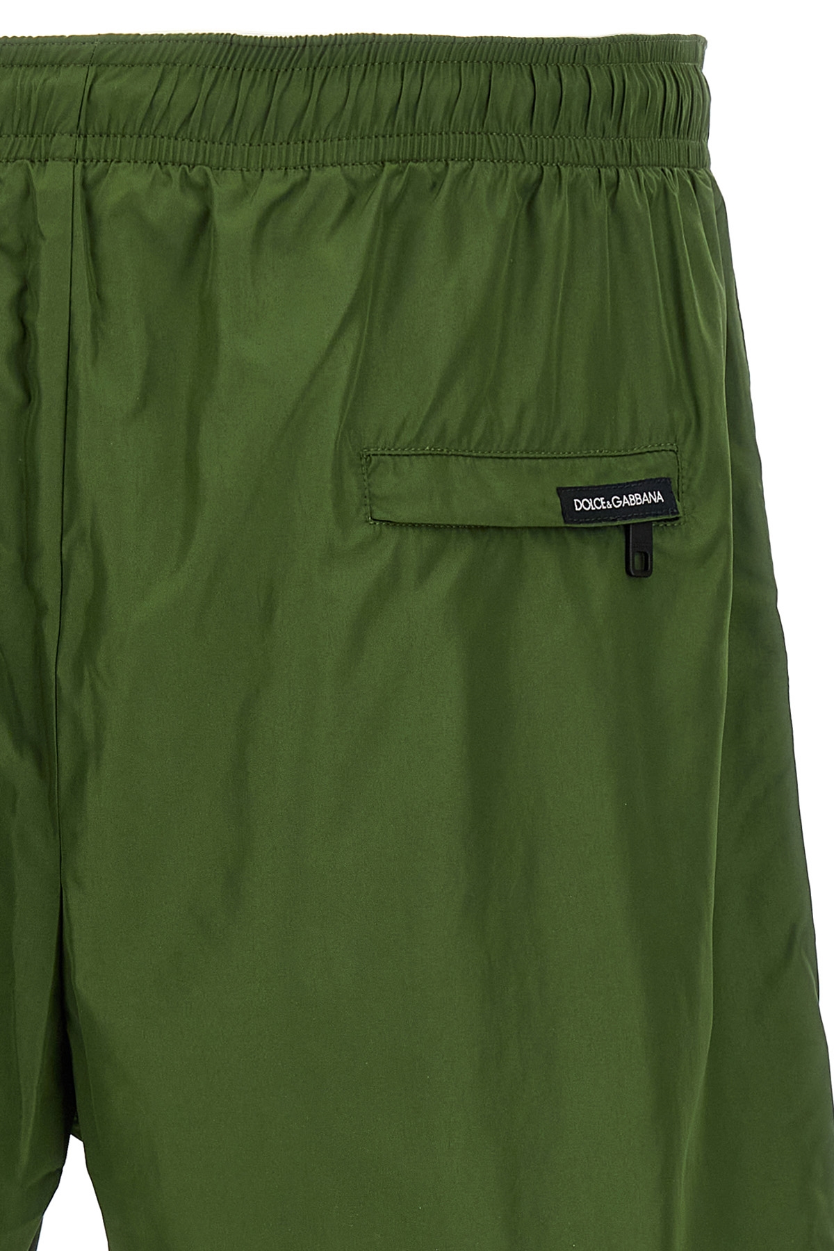 Swimsuit in technical fabric, contrasting logo embroidery on the front, elastic with adjustable drawstring at the waist, pockets, inner briefs.