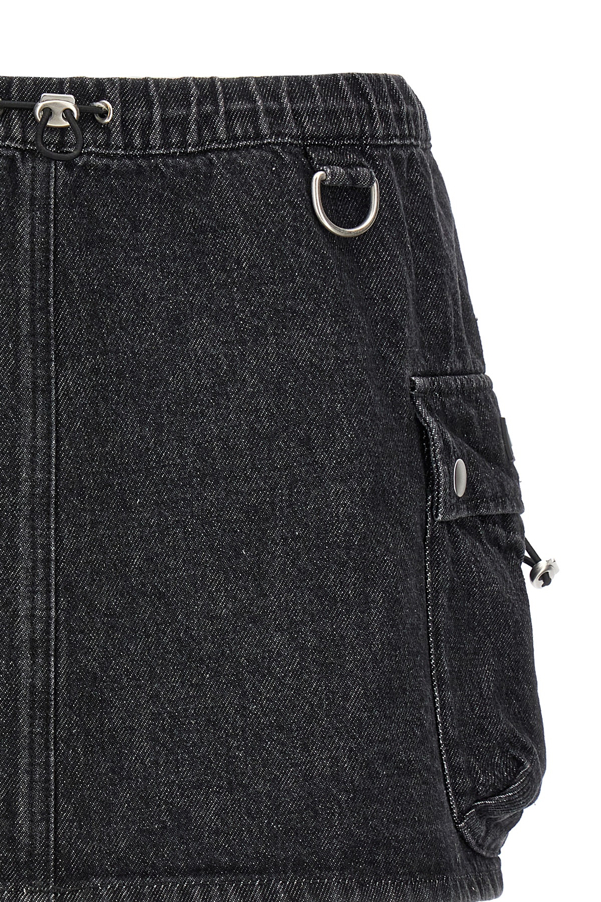 'Denim Cargo' cotton denim skirt, elastic and adjustable drawstring at the waist, pockets.
