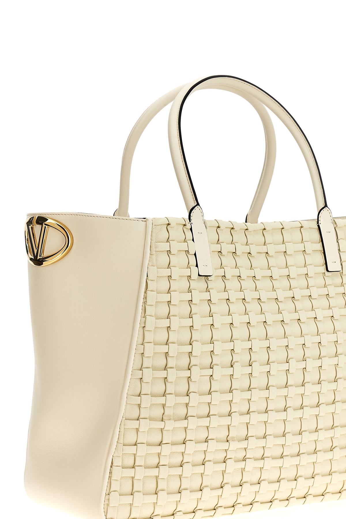 'VLogo Side' pleated nappa leather shopping, gold metal side logo, double handle, snap hook closure.