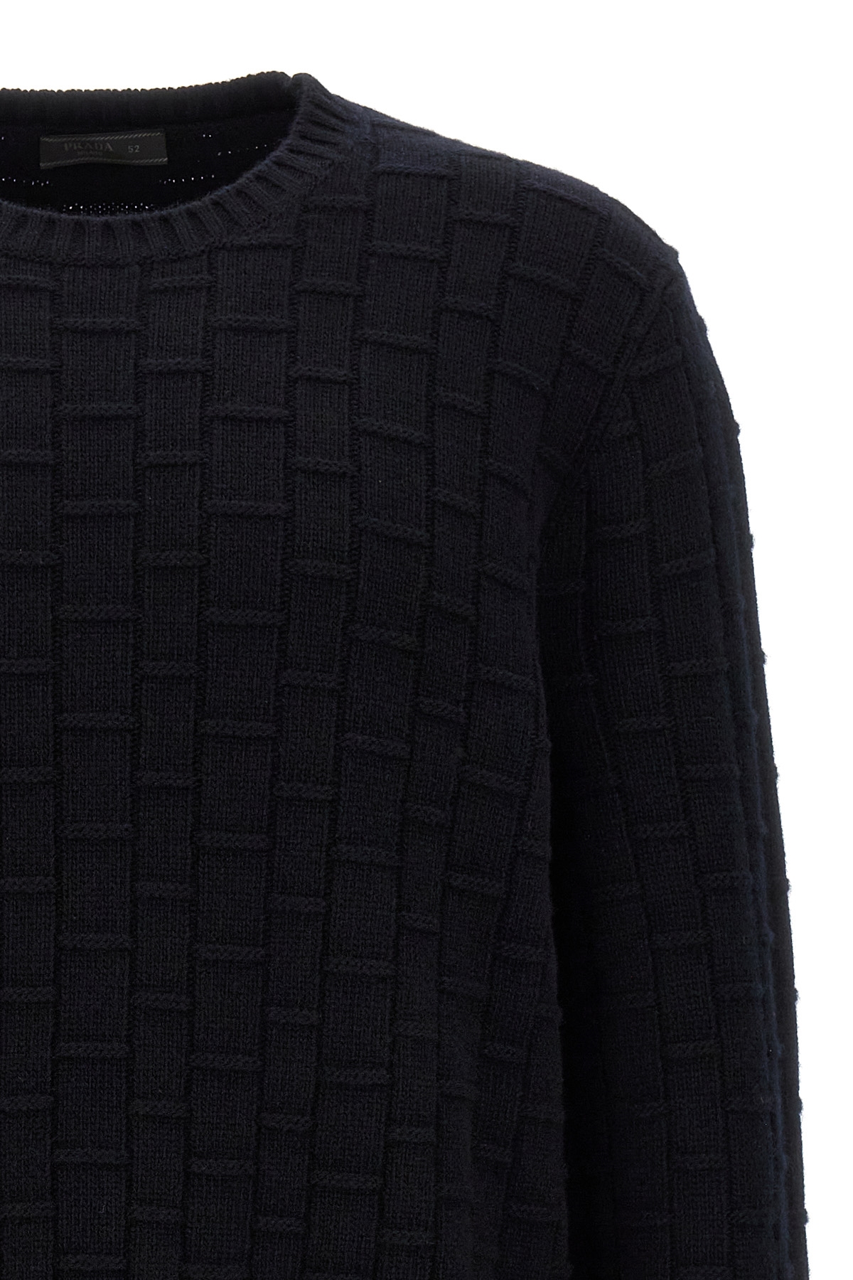 Crewneck sweater in processed wool and cashmere with long cuffed sleeves.