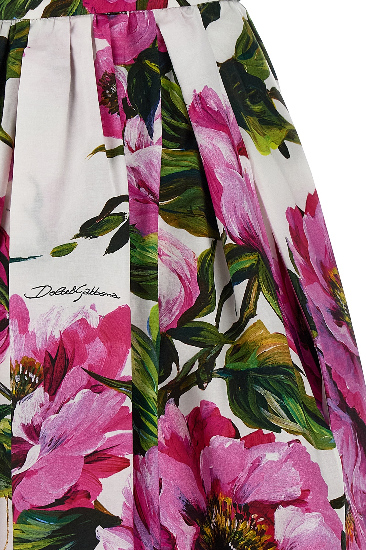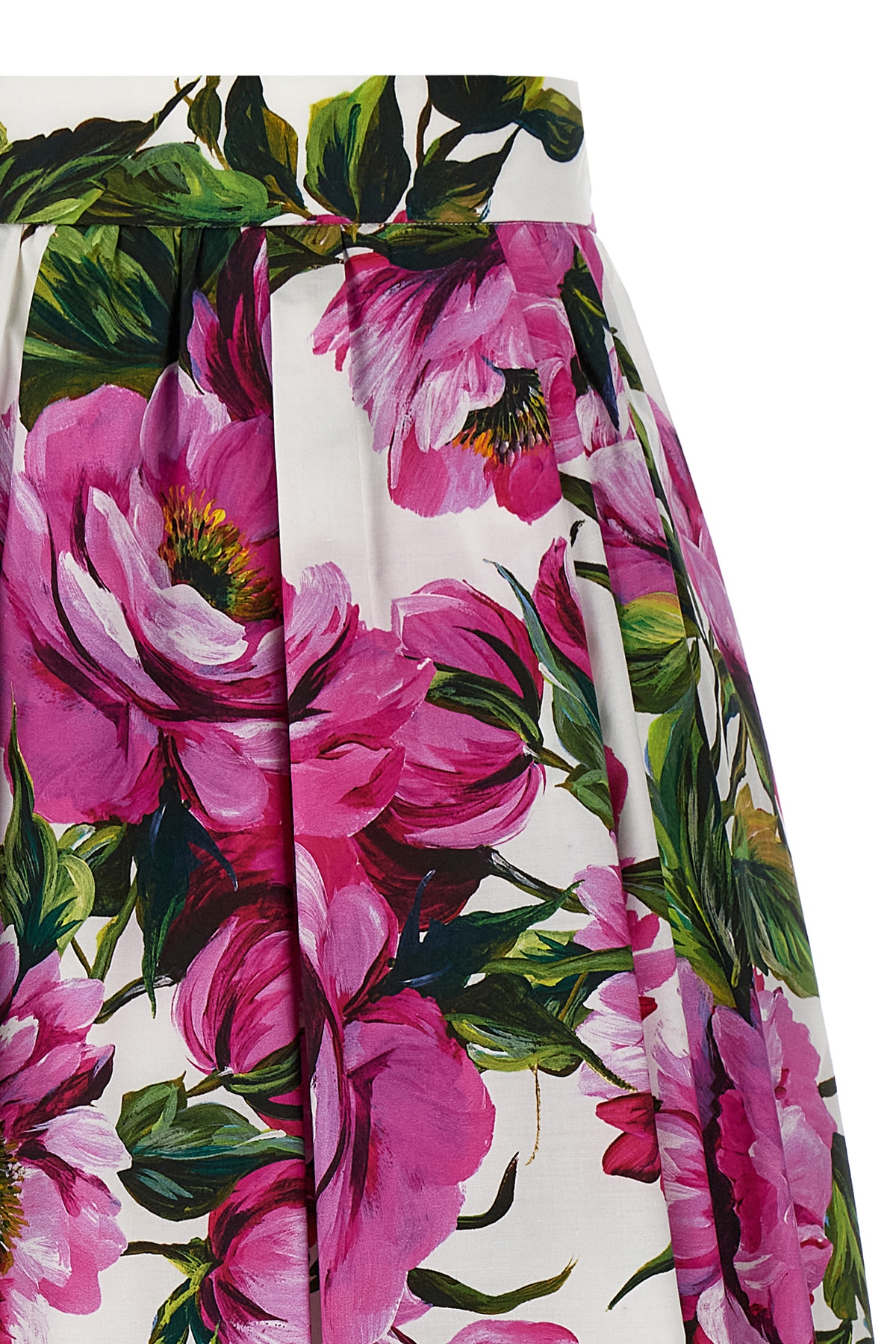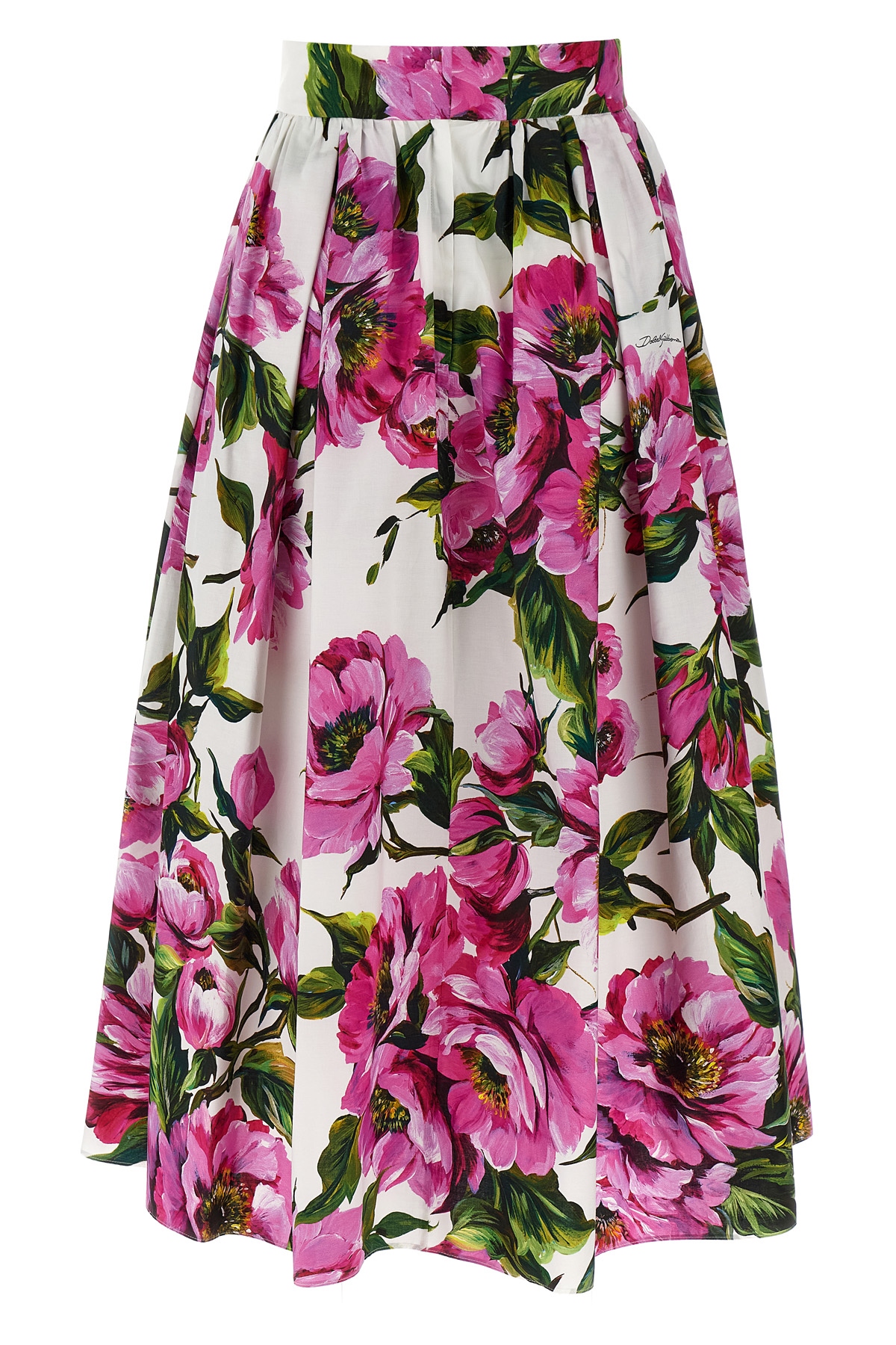 'Bouquet' print cotton skirt, full skirt with pleats, pockets, back zip closure.