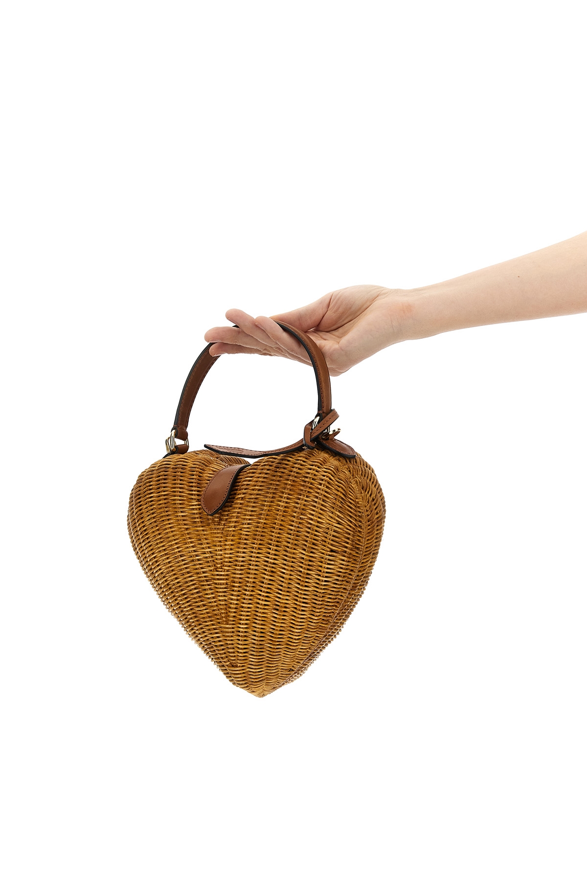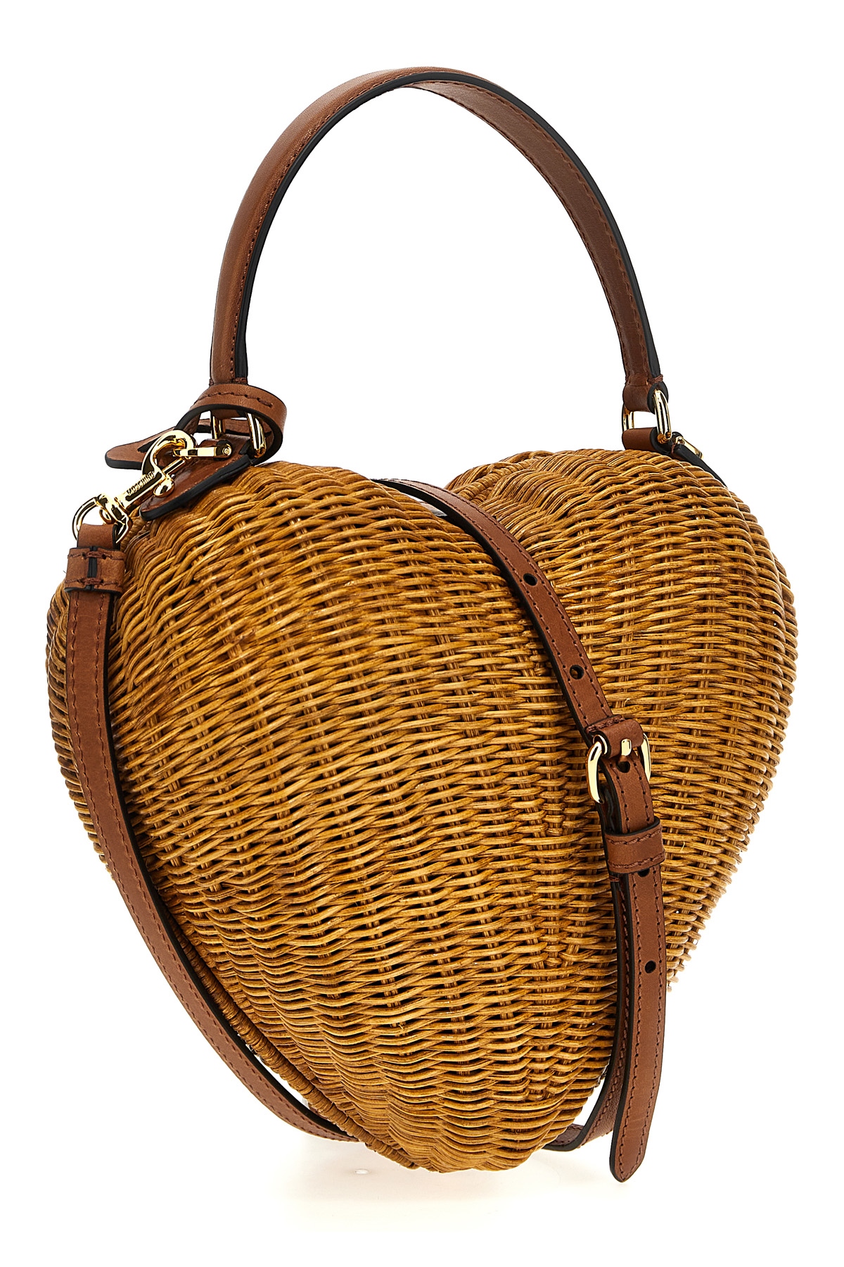 'Cuore' wicker handbag, fixed leather handle, button closure, adjustable and removable leather shoulder strap.