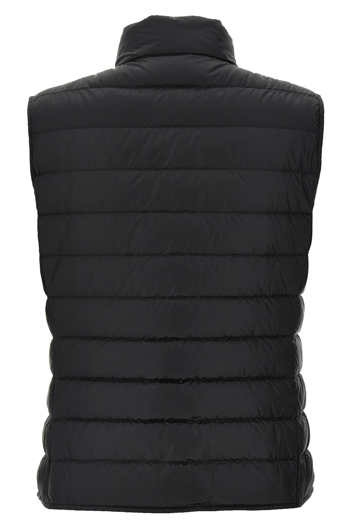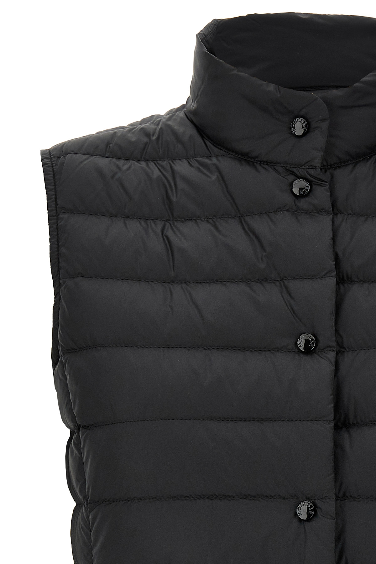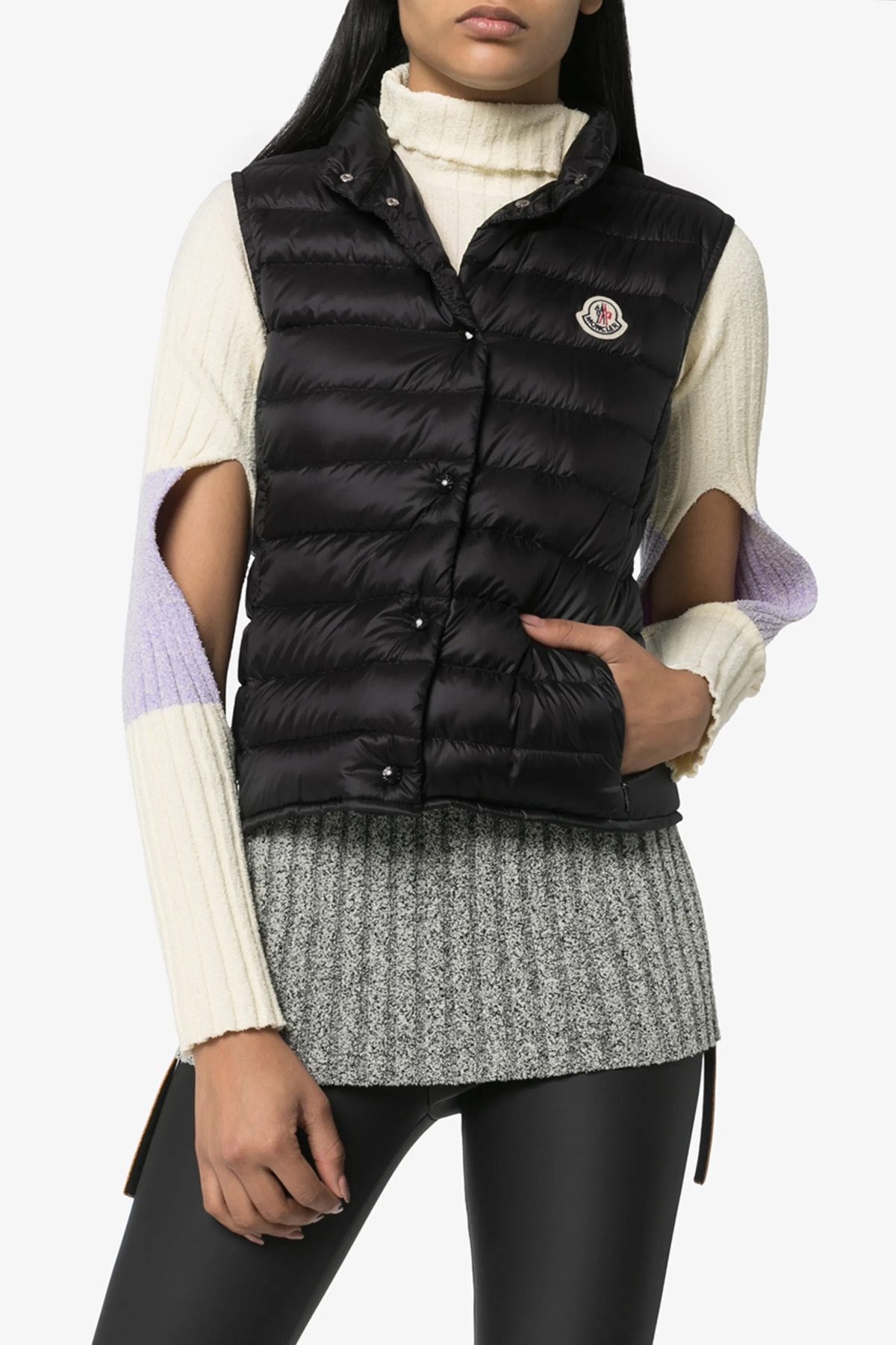'Liane' goose feather padded vest, front logo patch, button closure, high neck, side pockets.