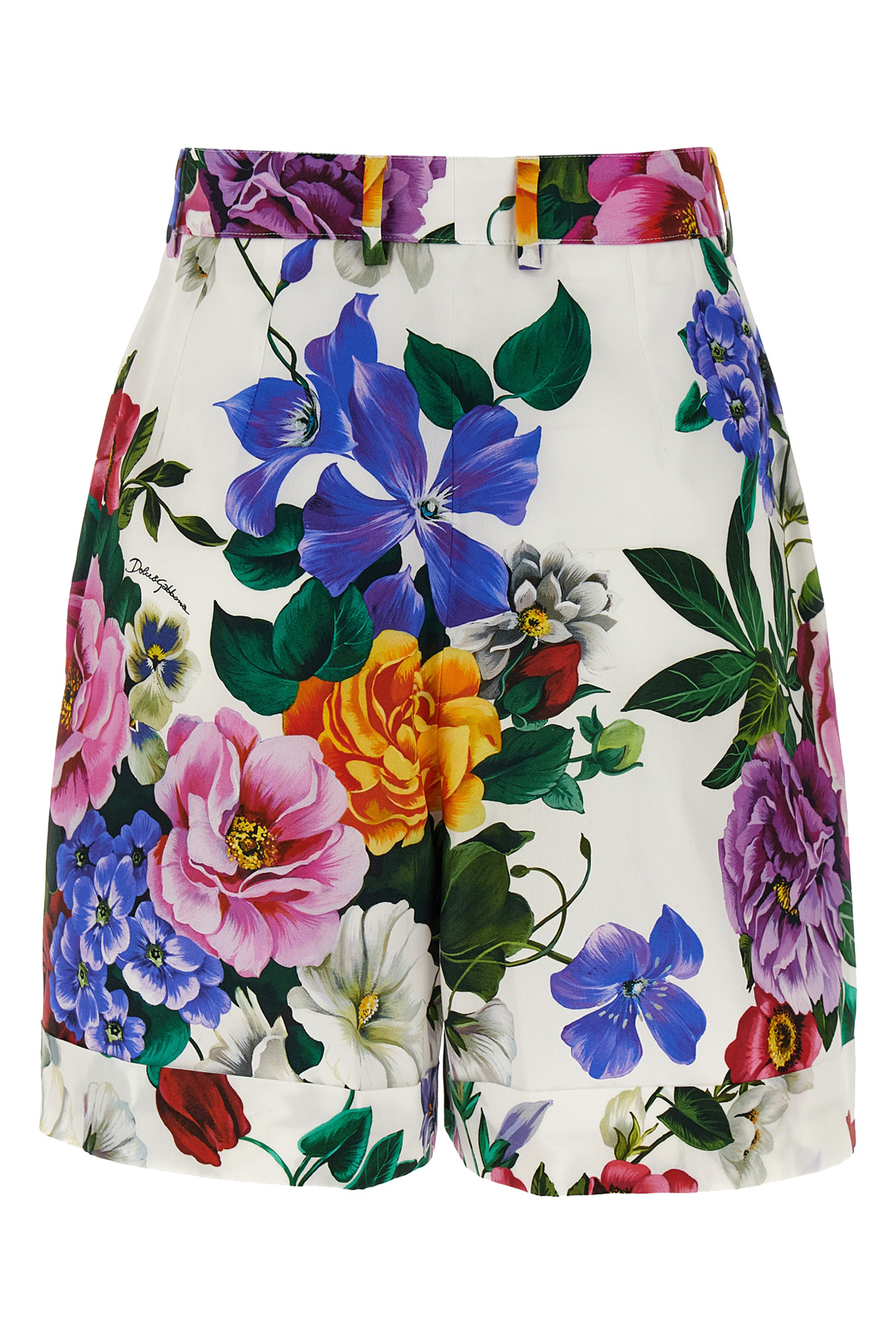 'Bouquet' print cotton bermuda shorts, wide leg with turn-up, zip and button closure, stretched pleat, pockets.