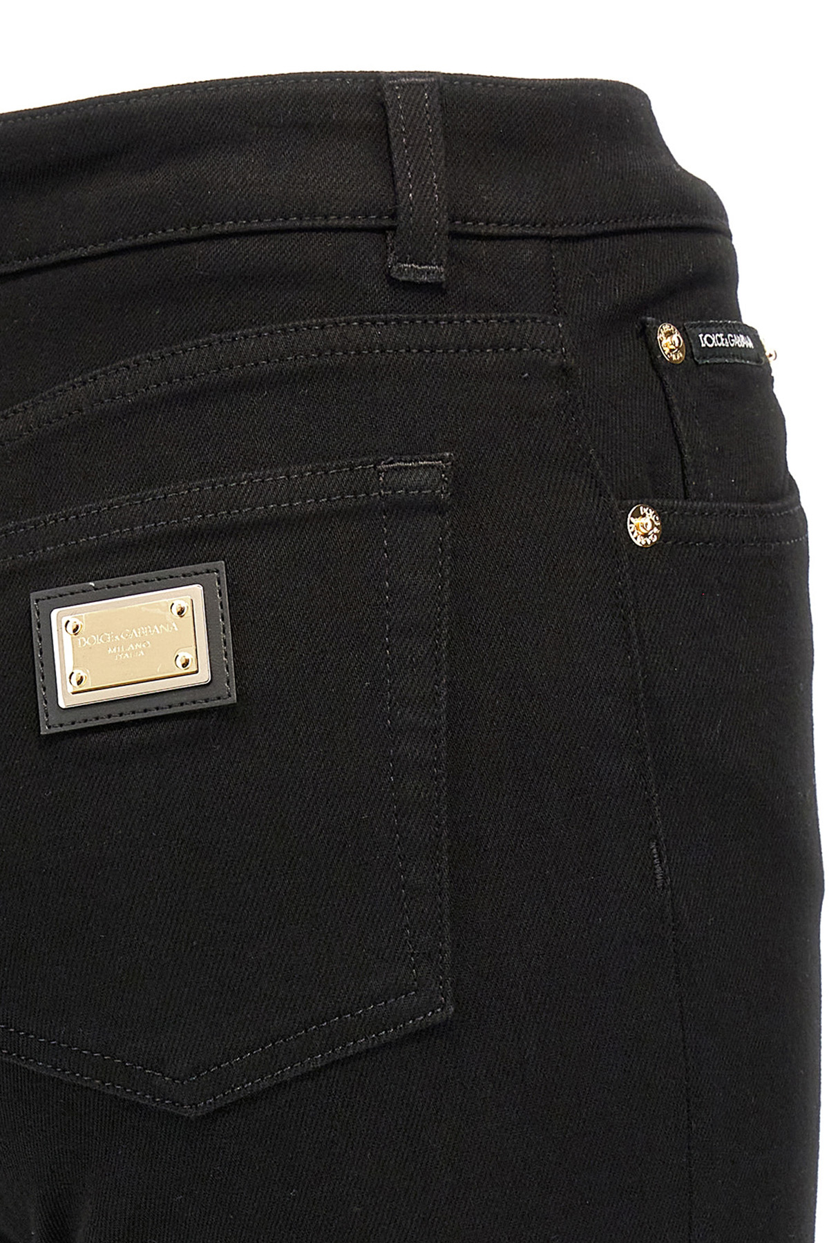 Garment-dyed cotton denim jeans with back metal logo, five pockets, straight leg, zip and button closure.
