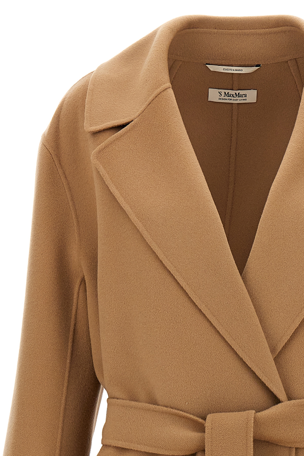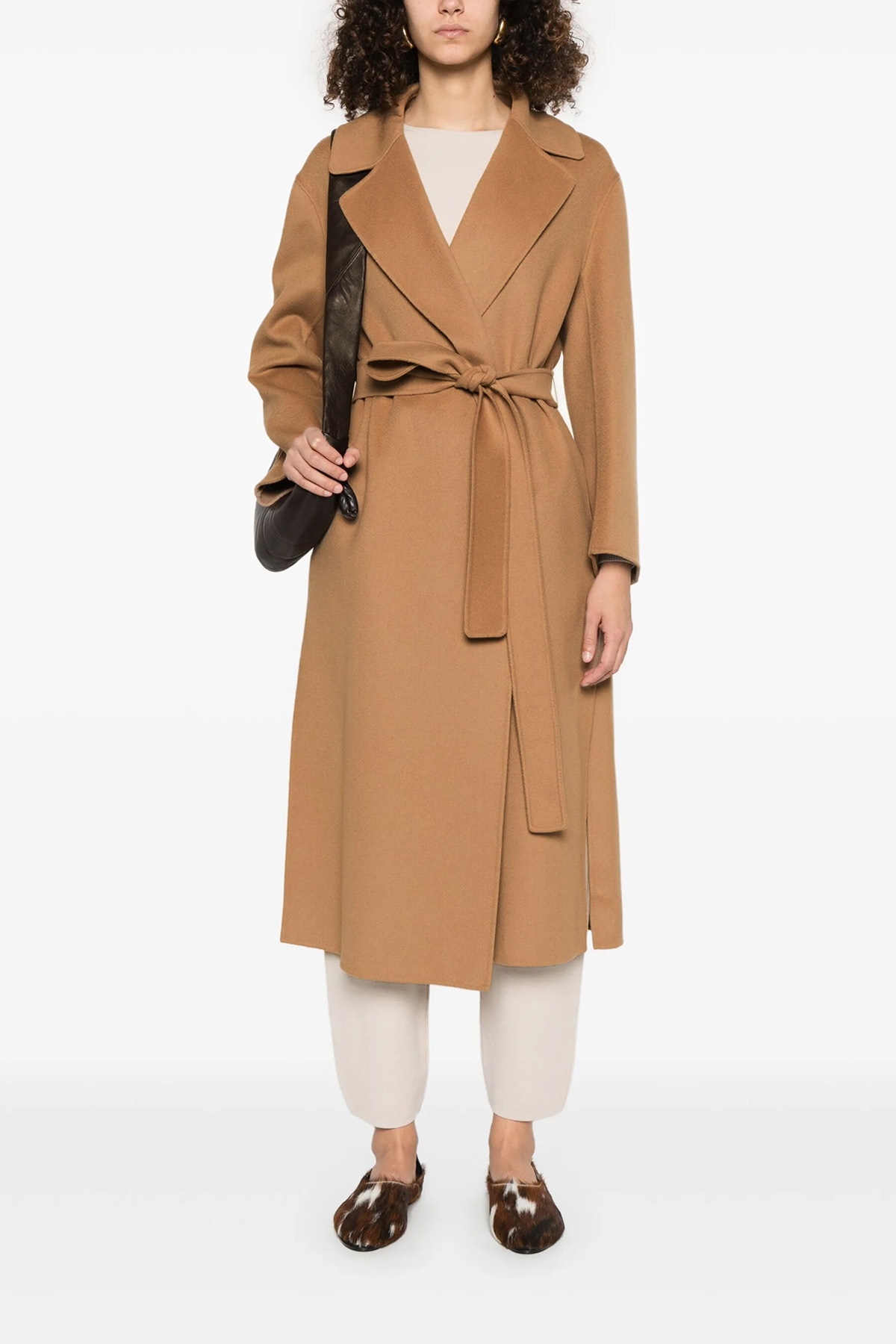 'Livia' wool coat, pockets, long sleeves, belt closure at the waist, side slits.