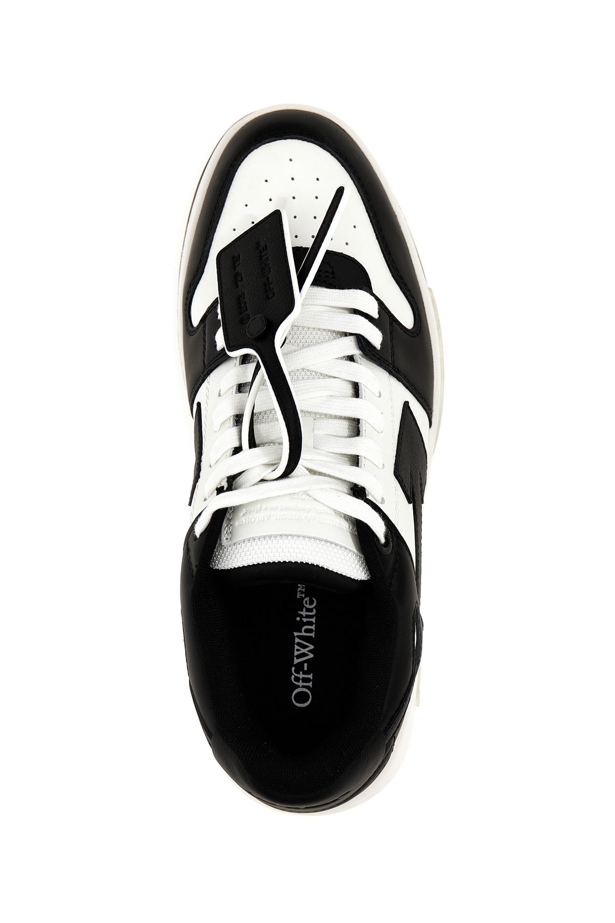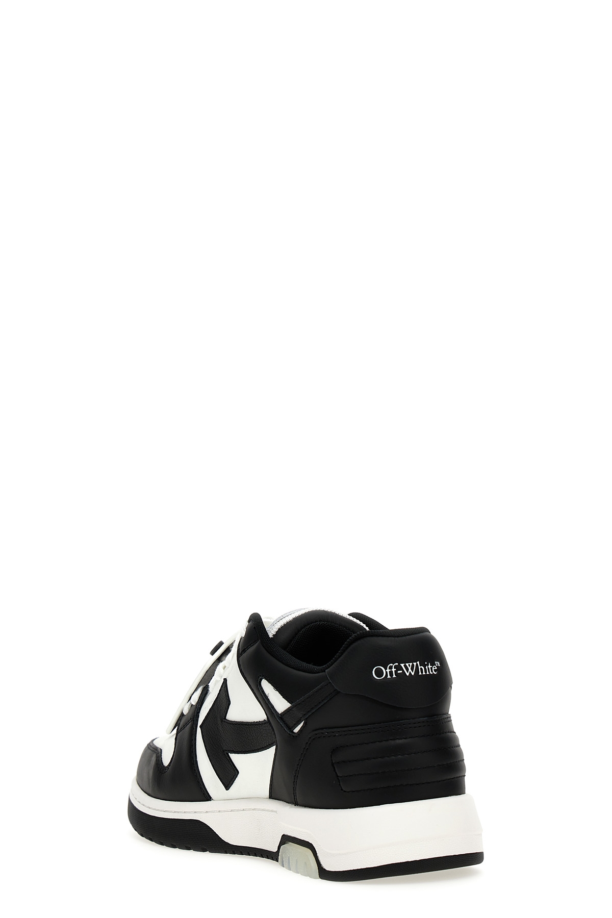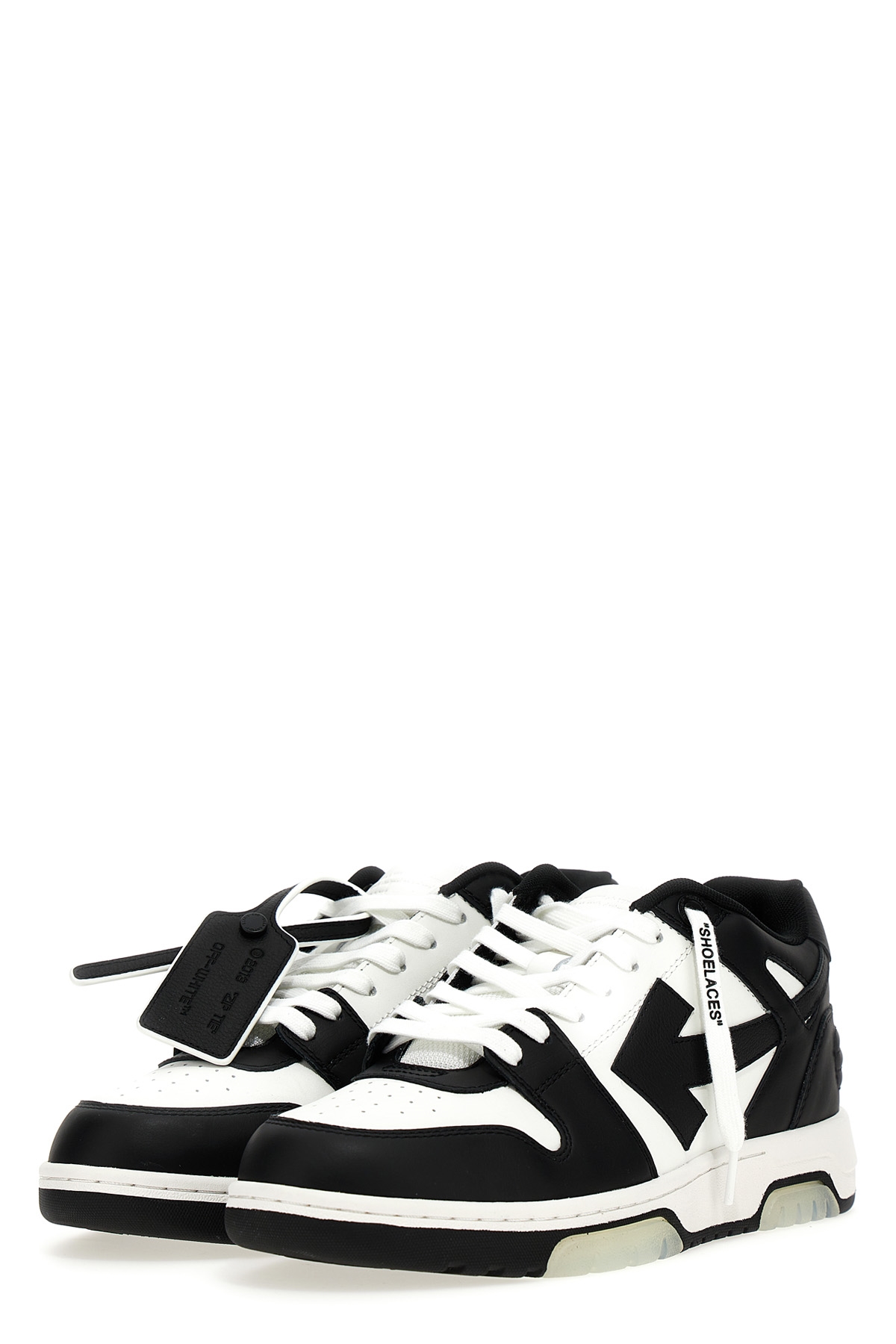 Out of office' leather low-top, lace-up sneakers with rubber sole.