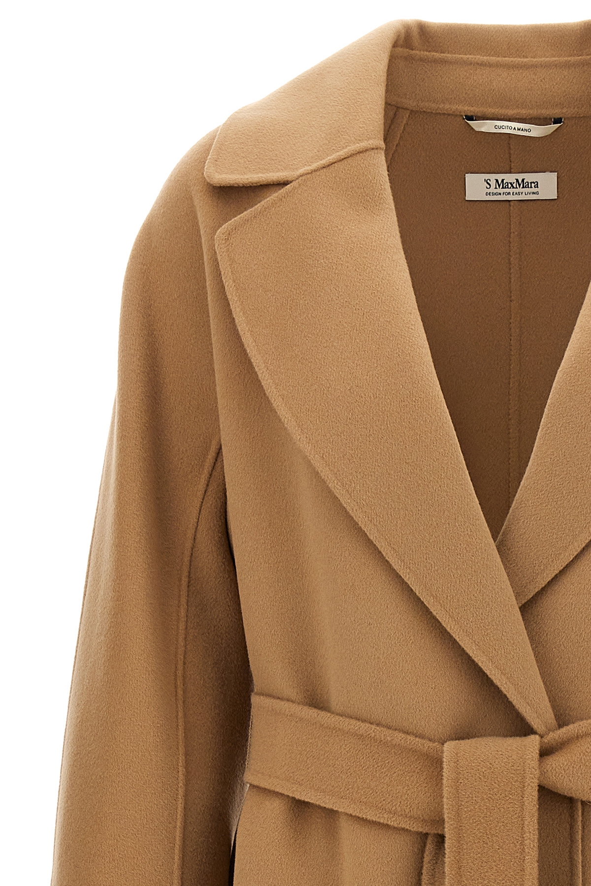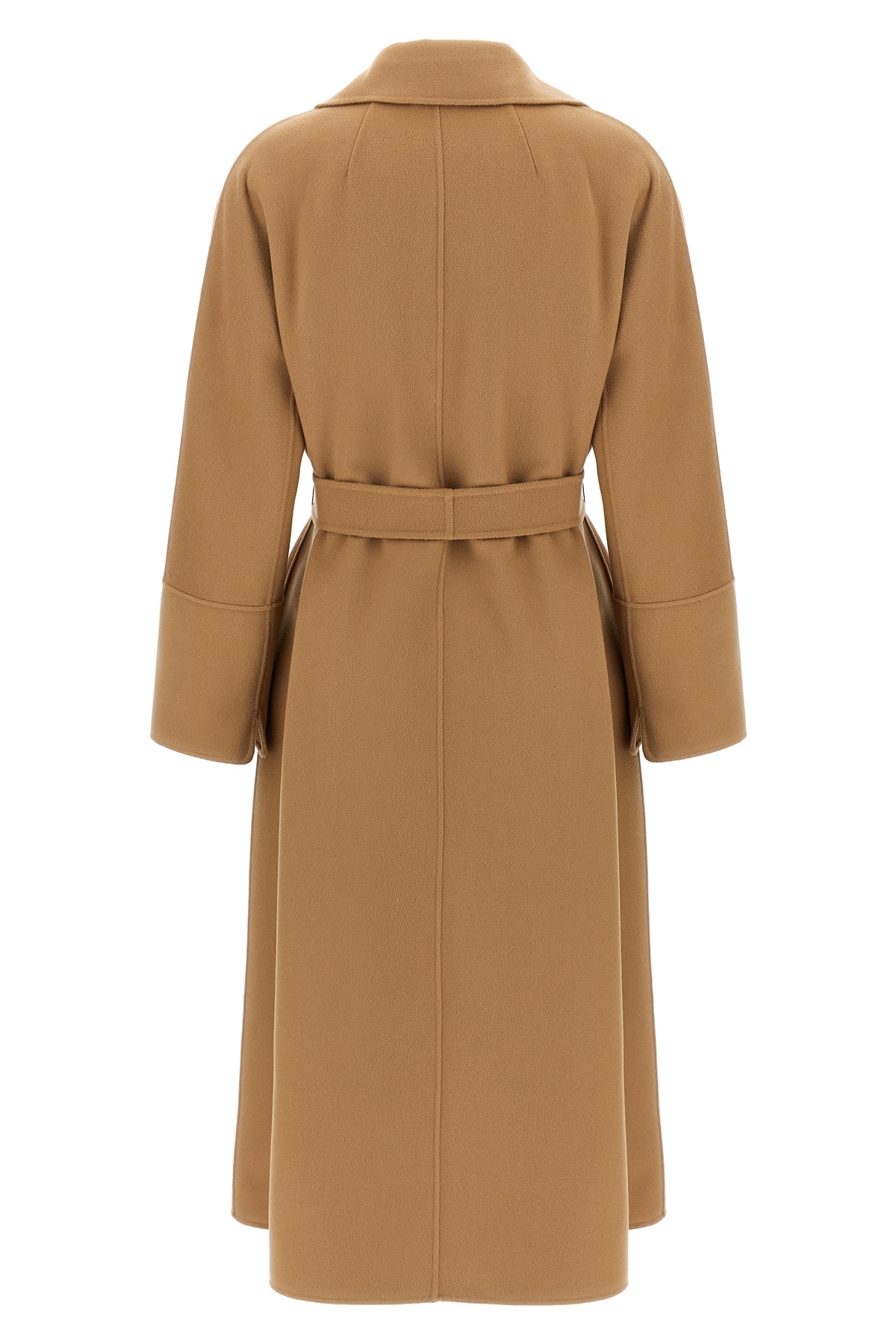 'Elisa' wool coat with long kimono sleeves, belted closure at the waist.