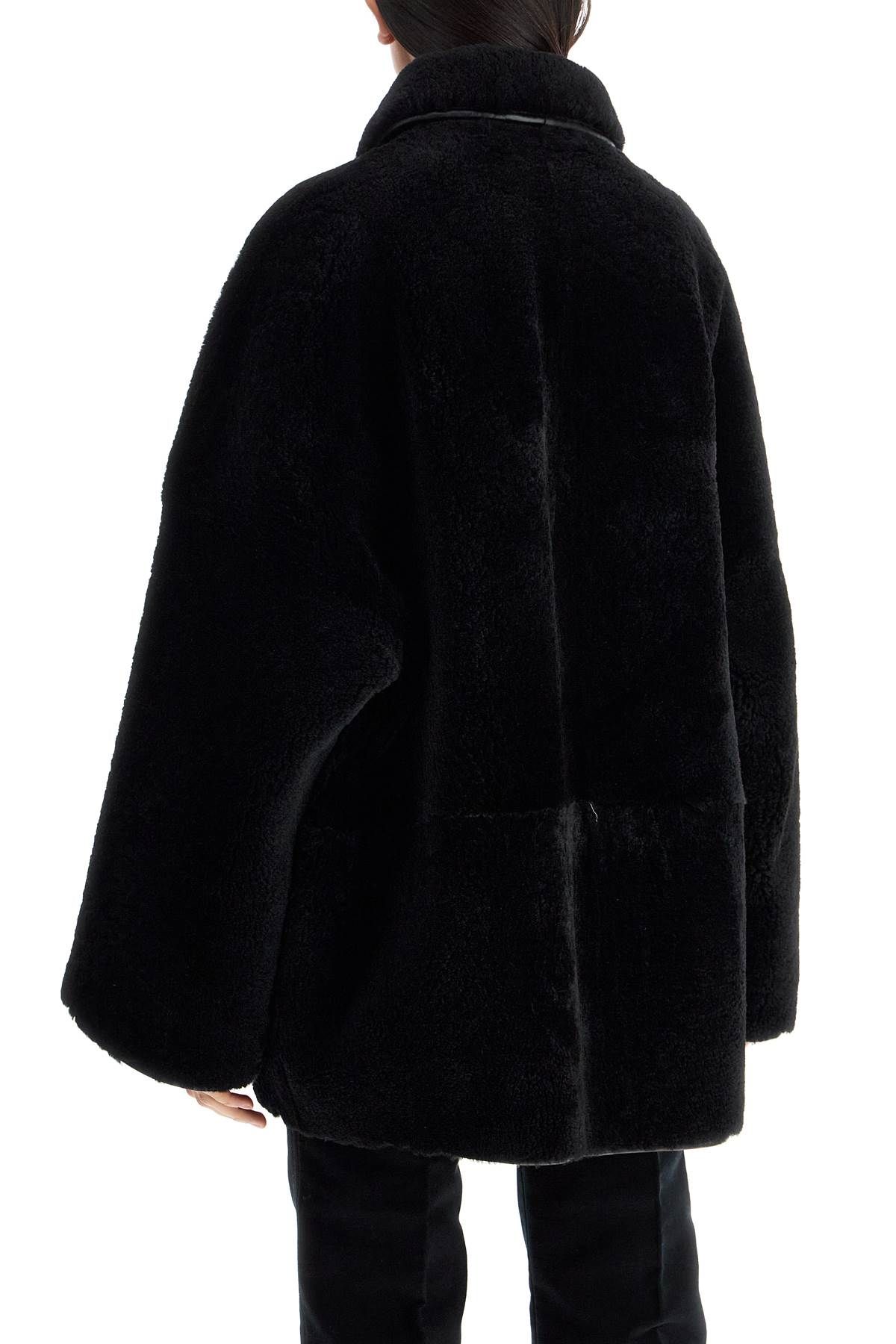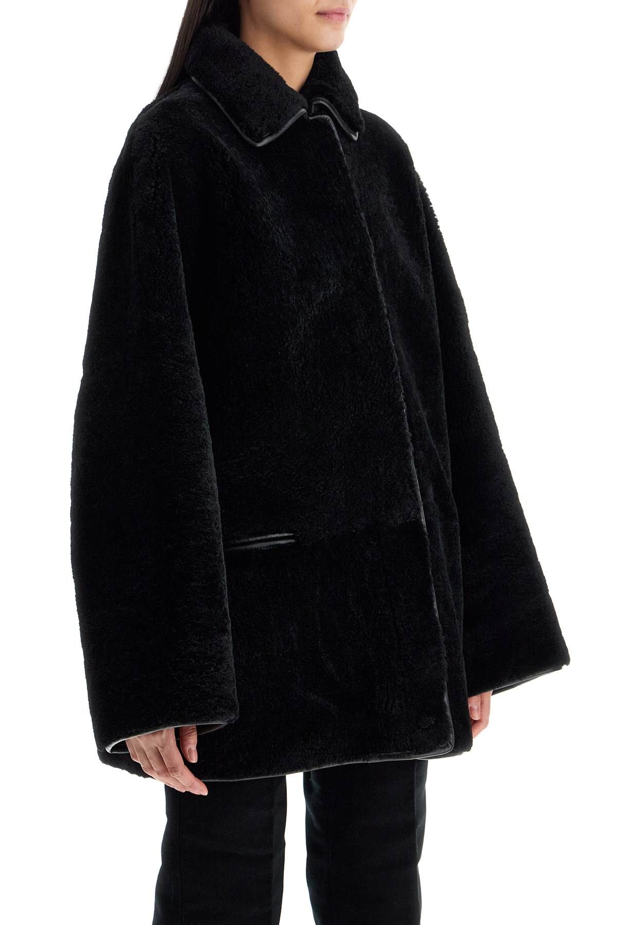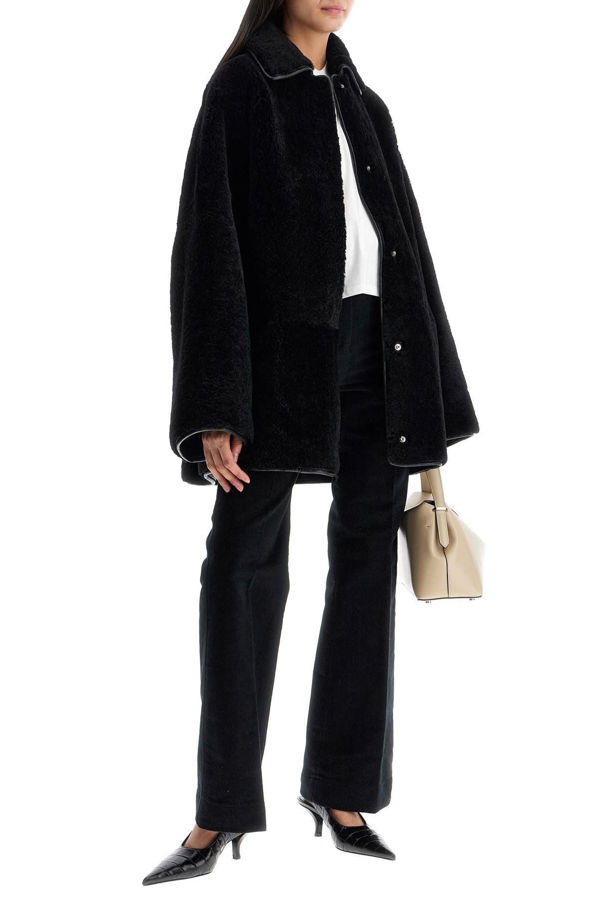 The TOTEME shirt-jacket in black lambskin combines elegance and practicality. With loose fit and minimalist design, it is perfect for spring fashion and any occasion