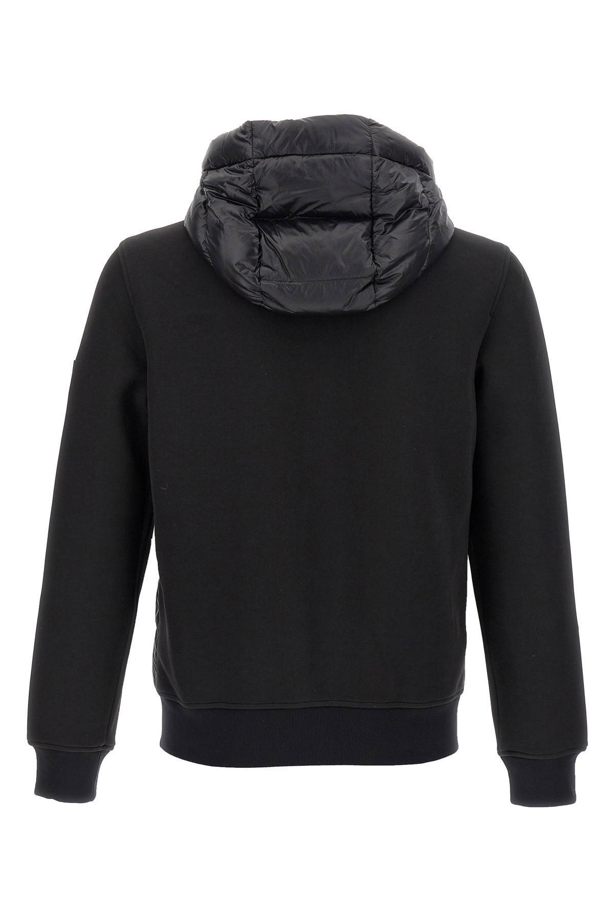 'Frank-R' nylon padded and knitted down jacket with hood, zip closure, pockets, long cuffed sleeves.