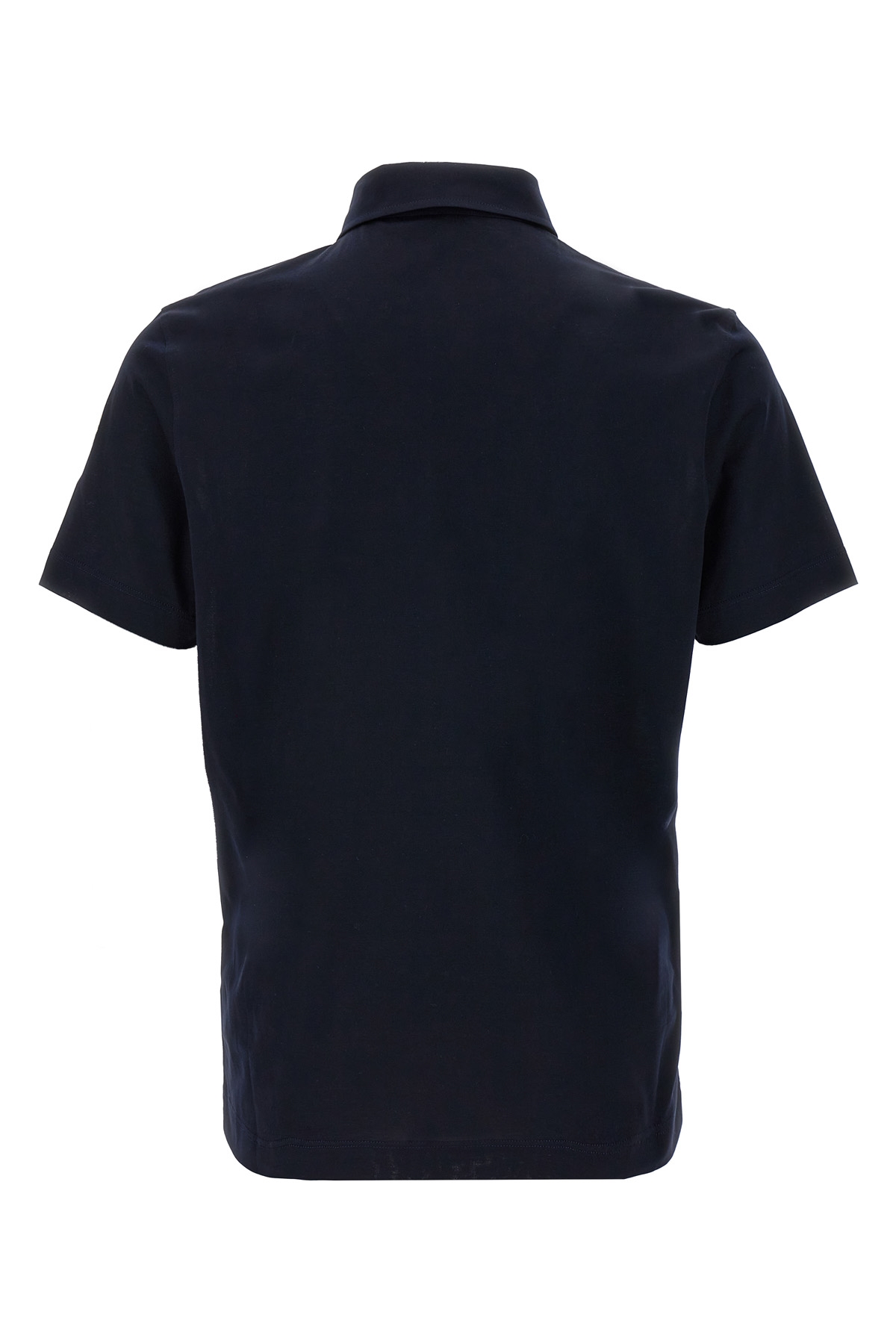 Stretch cotton jersey polo shirt with collar and buttons, short sleeves with felt logo patch.