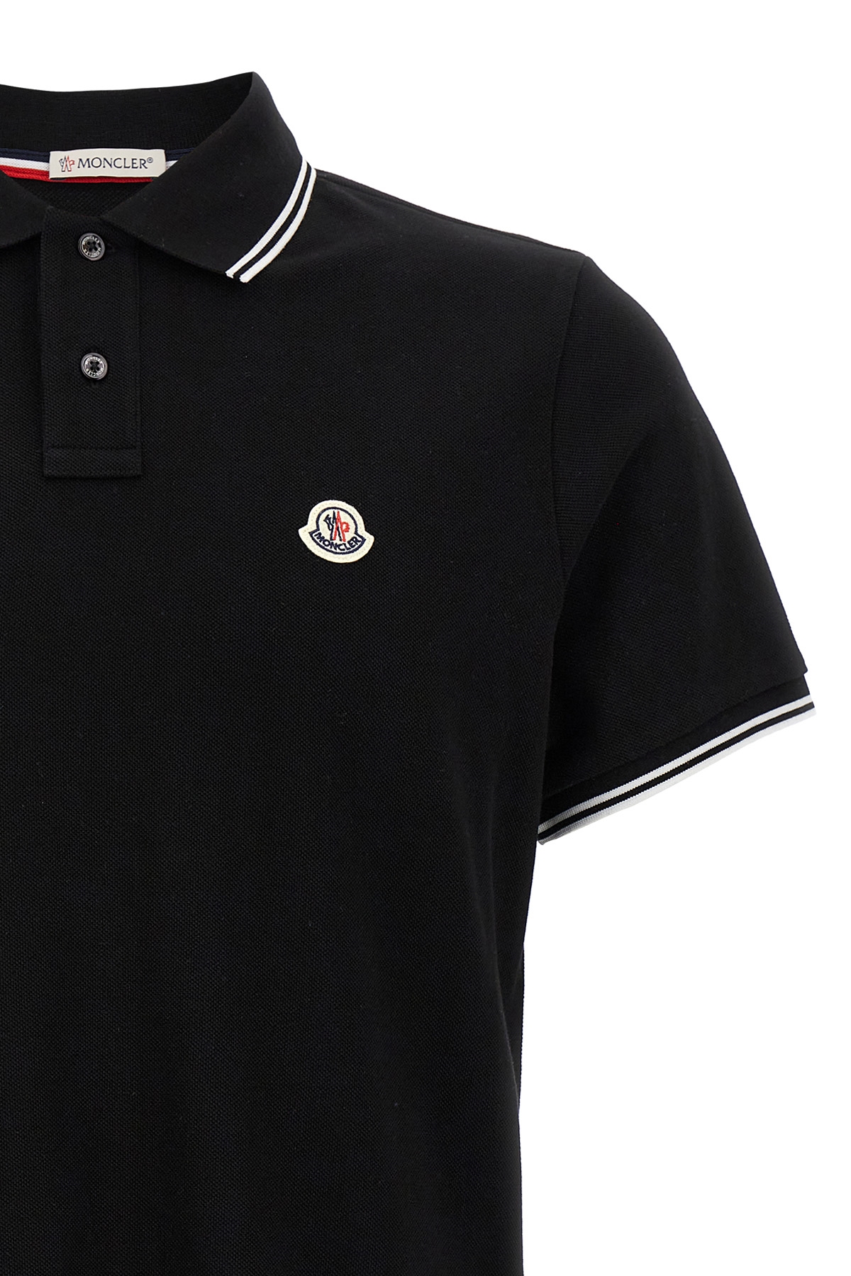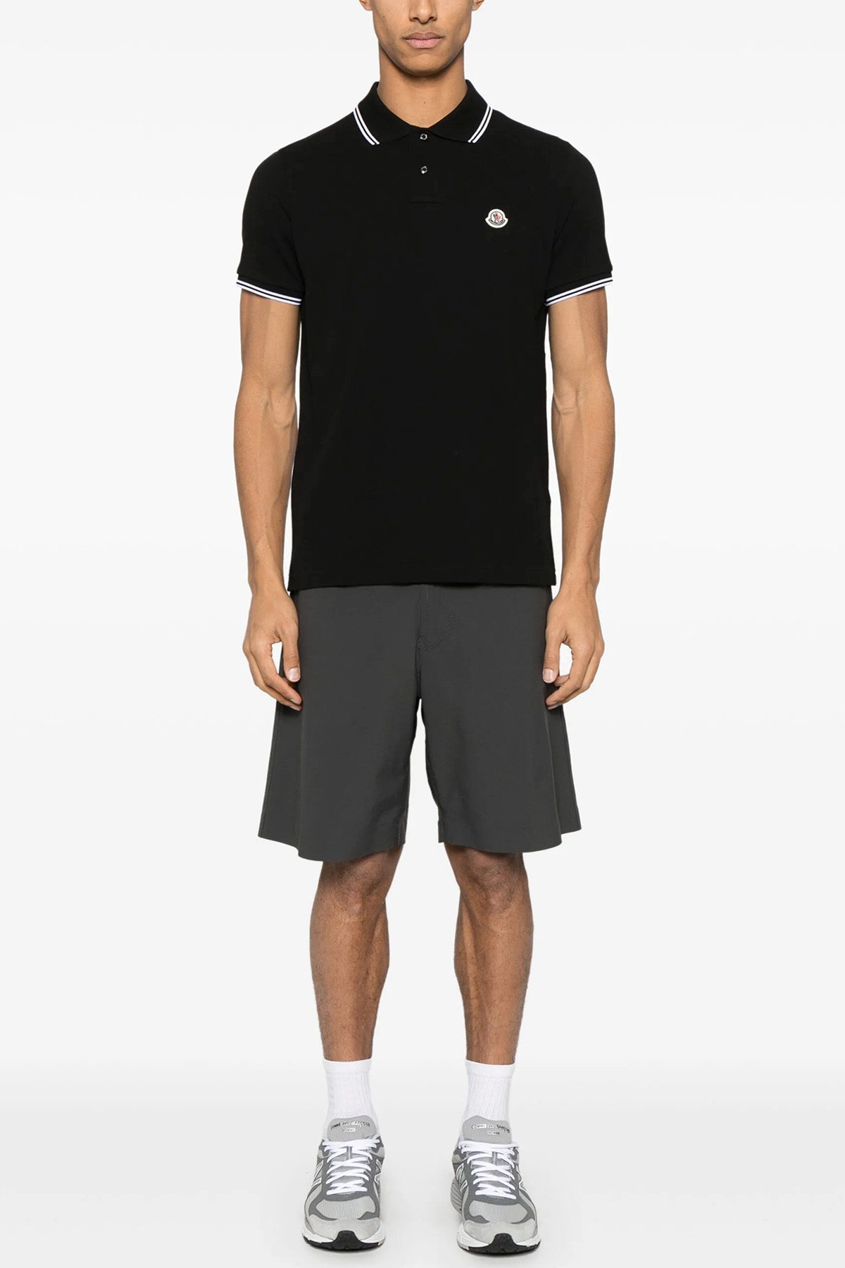 Cotton pique polo shirt with contrast details, front logo patch, collar and buttons, short sleeves.
