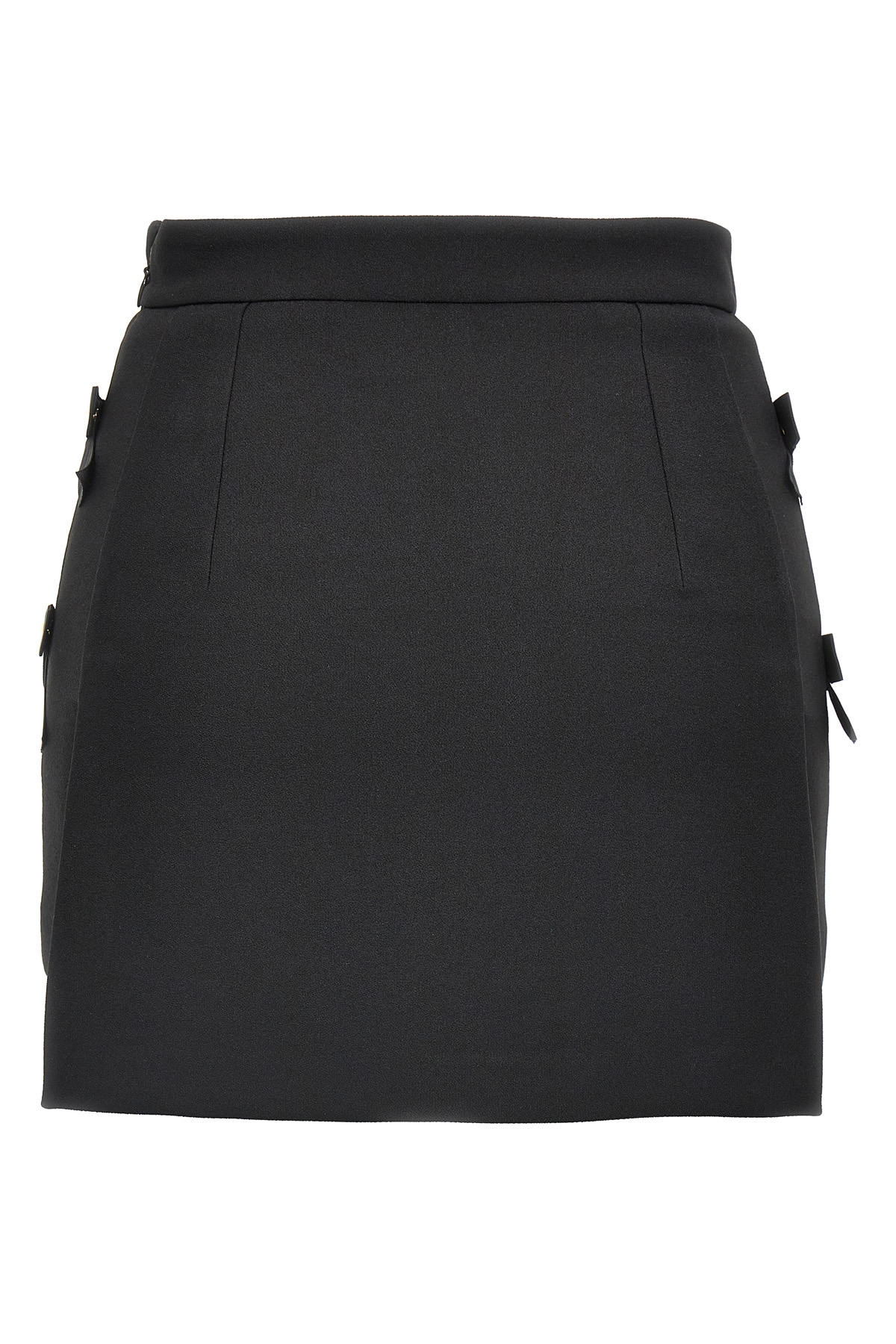 Mini skort with side bow application detail. Front and back panels that create skirt illusion.