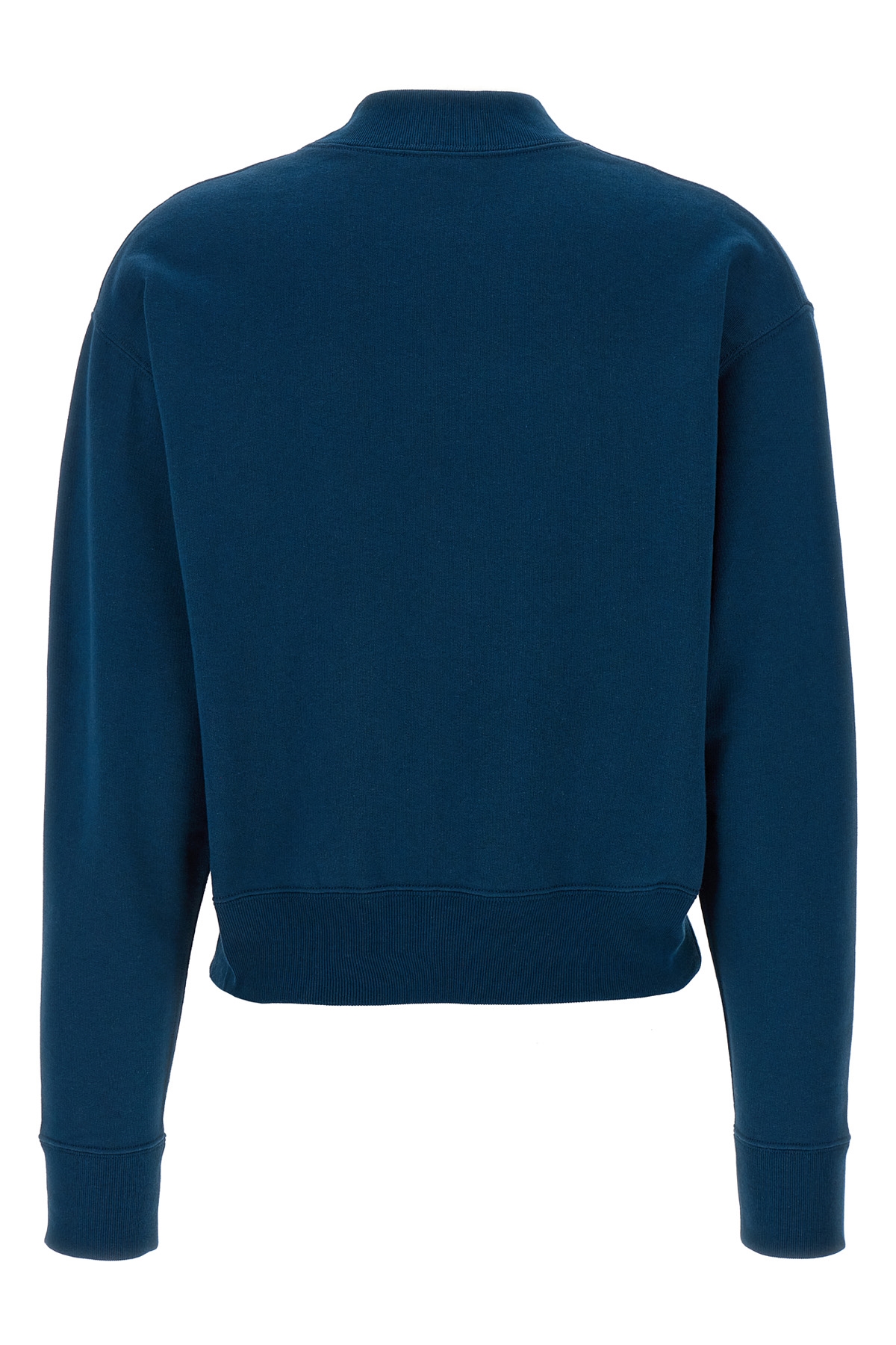 Mock neck slightly boxy sweatshirt in brushed cotton with contrasting logo patch on the front.