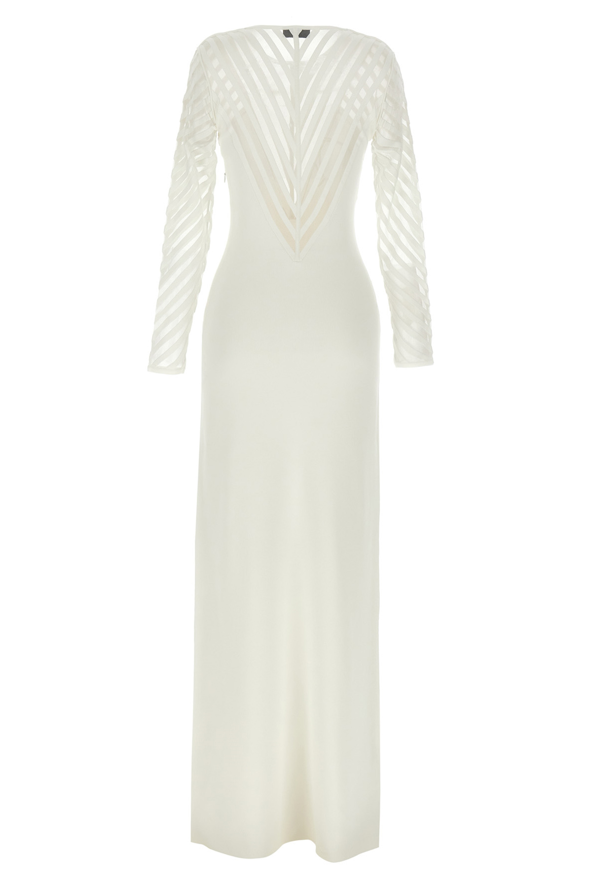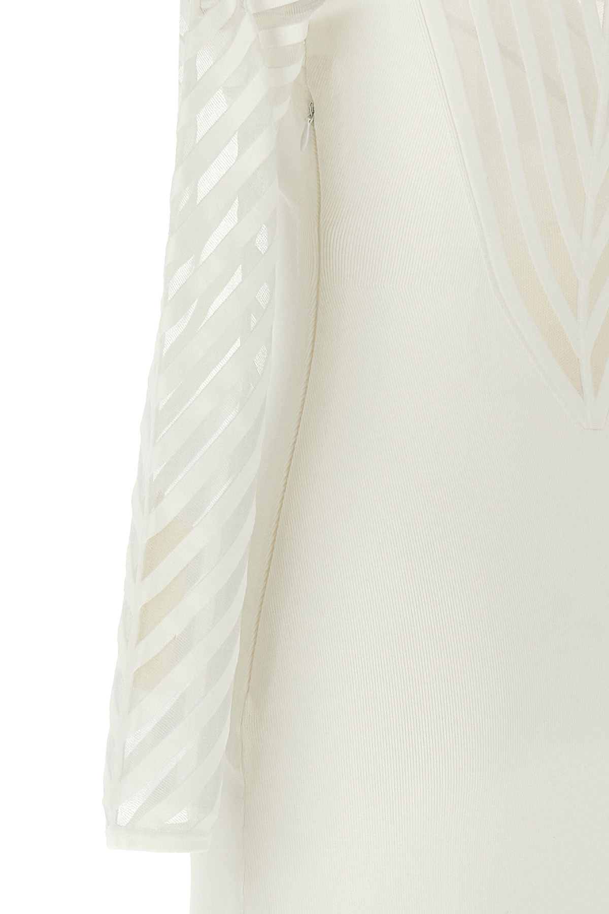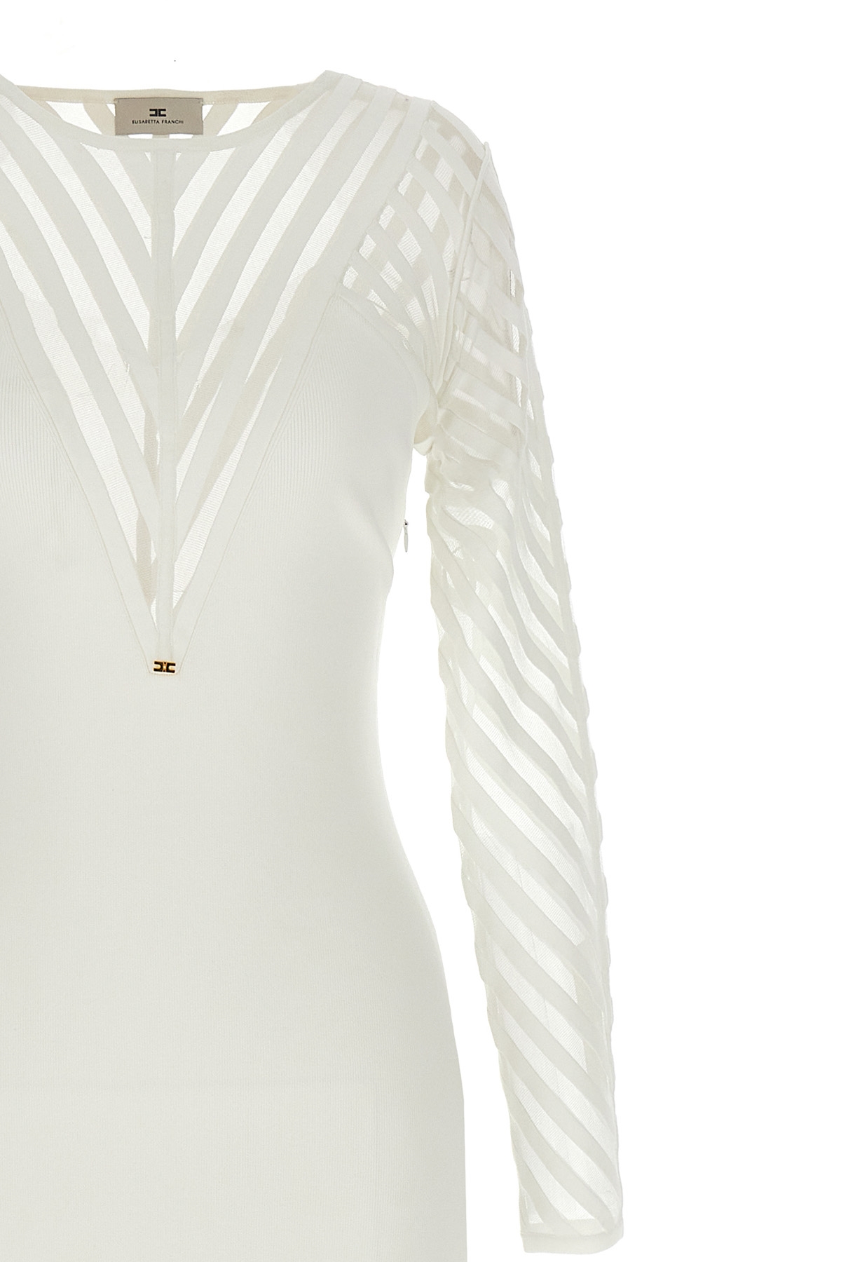 Viscose visa knit dress with long sleeves and transparent fabric detail with striped pattern. Invisible side zip.